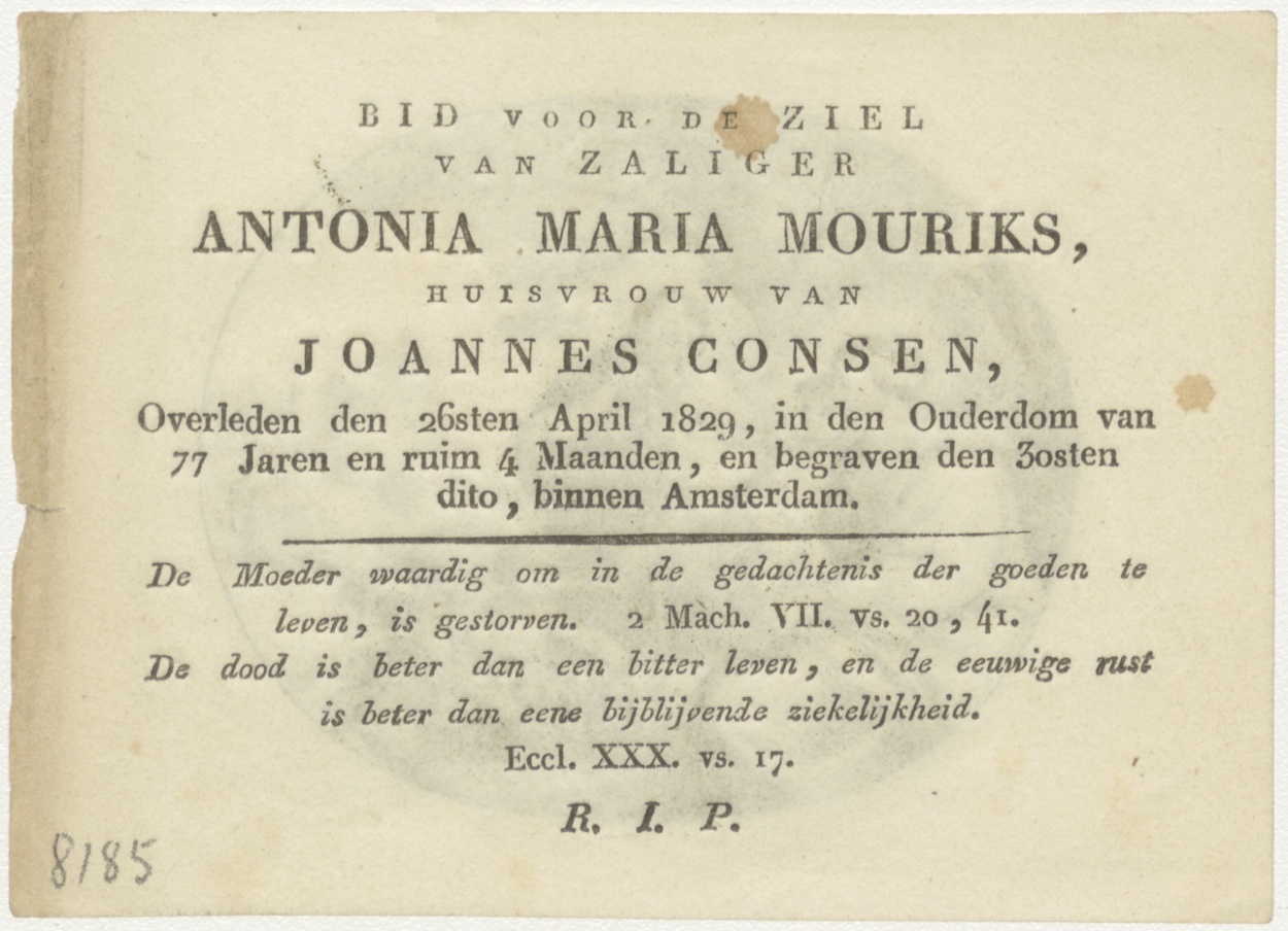 H. Familie, kz. Bid voor ziel Mouriks-Consen (+1829) Amsterdam