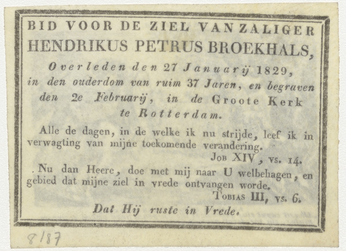Absalom hangt in de boom, kz. Bid voor ziel Broekhals (+1829) Rotterdam