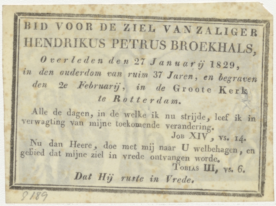 Gekruisigde Christus, kz. Bid voor ziel Broekhals (+1829) Rotterdam
