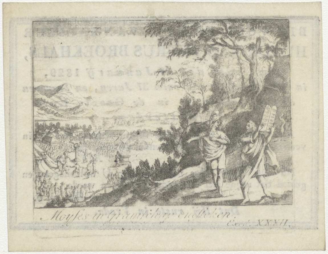 Mozes en gramschap ontstoken (Exod.32), kz. Bid voor ziel Broekhals (+1829) Rotterdam
