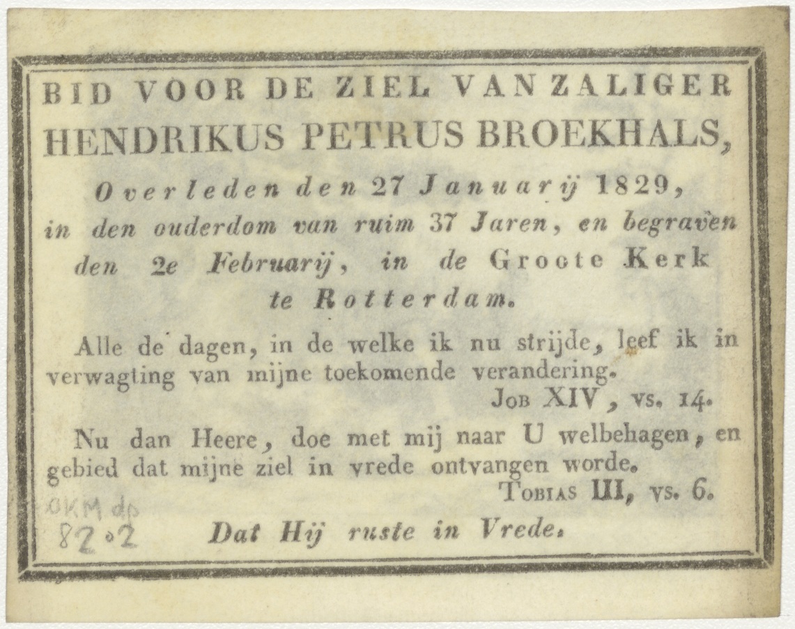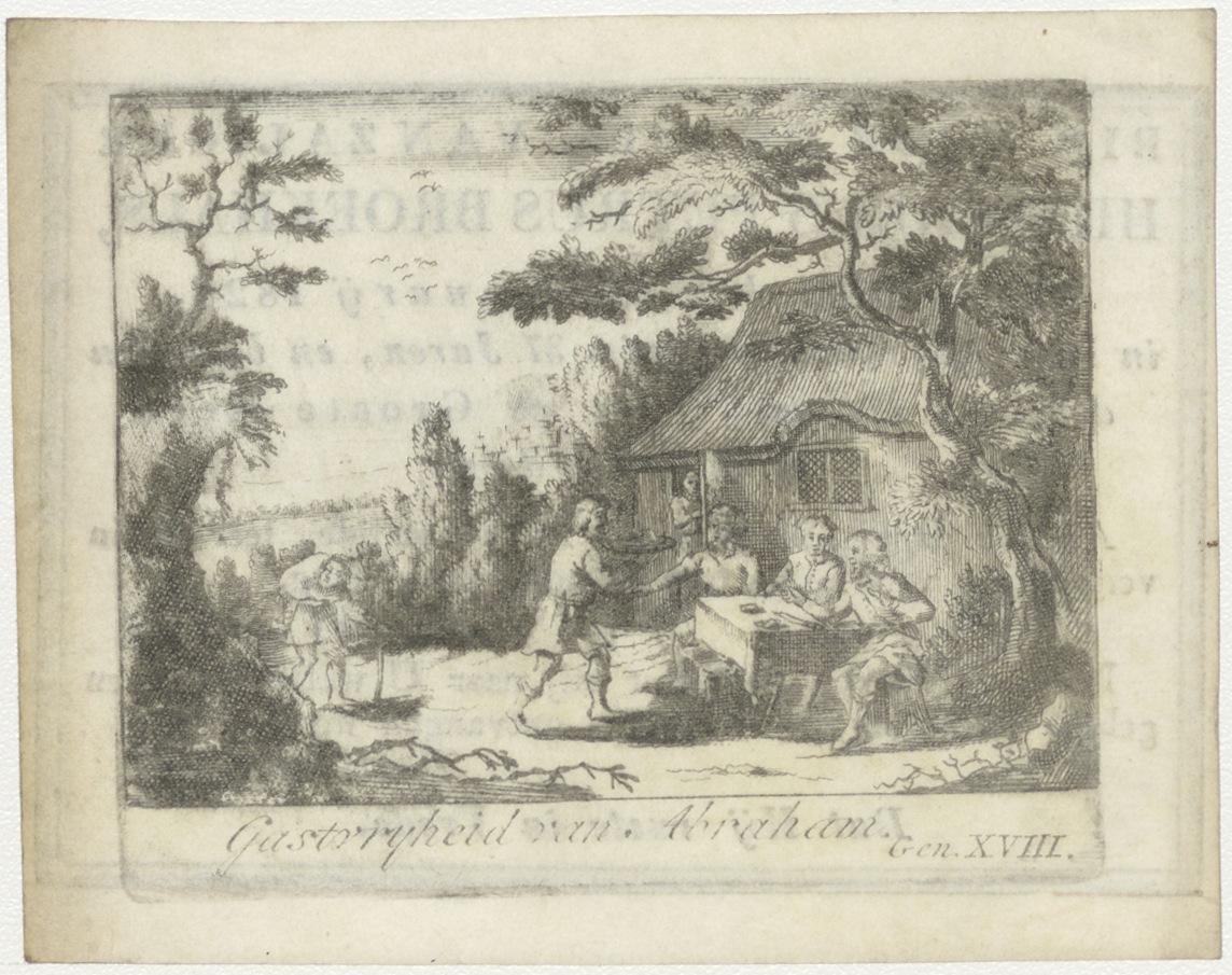 Gastvrijheid van Abraham (Gen. 18), kz. Bid voor ziel Broekhals (+1829) Rotterdam