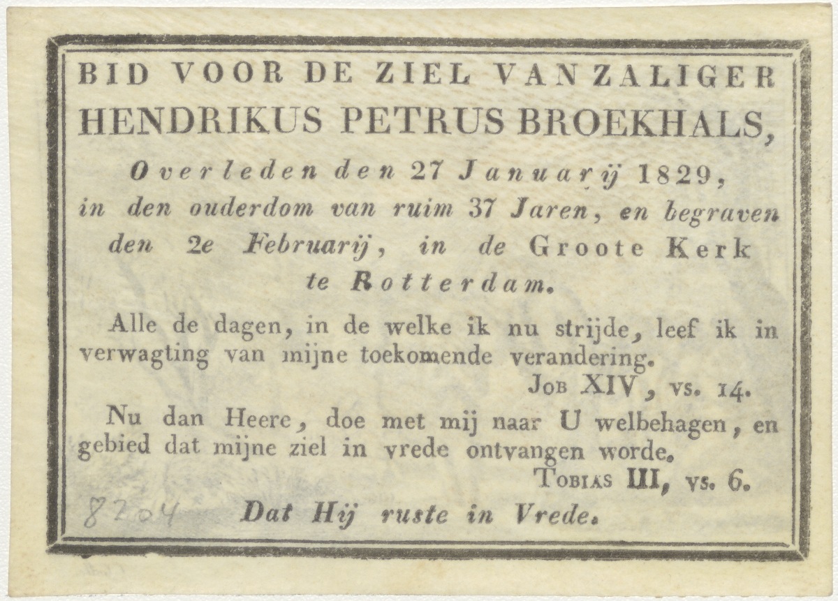 Doop van Christus in de Jordaan, kz. Bid voor ziel Broekhals (+1829) Rotterdam