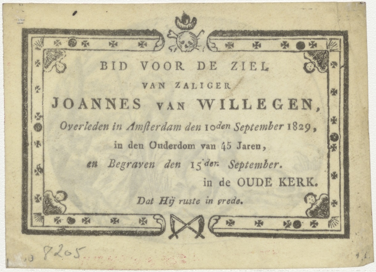 Tobias en de engel, kz. Bid voor ziel Joannes van Willigen (+1829) Amsterdam
