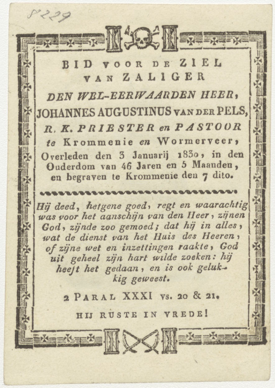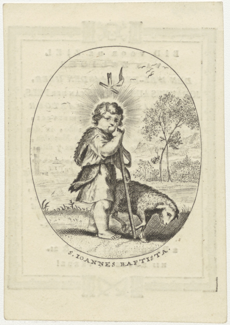 H. Johannes de Doper als kind, kz. Religieus; bid voor ziel Johannes Augustinus van der Pels (+1830) Krommenie, pastoor te Krommenie, Wormerveer