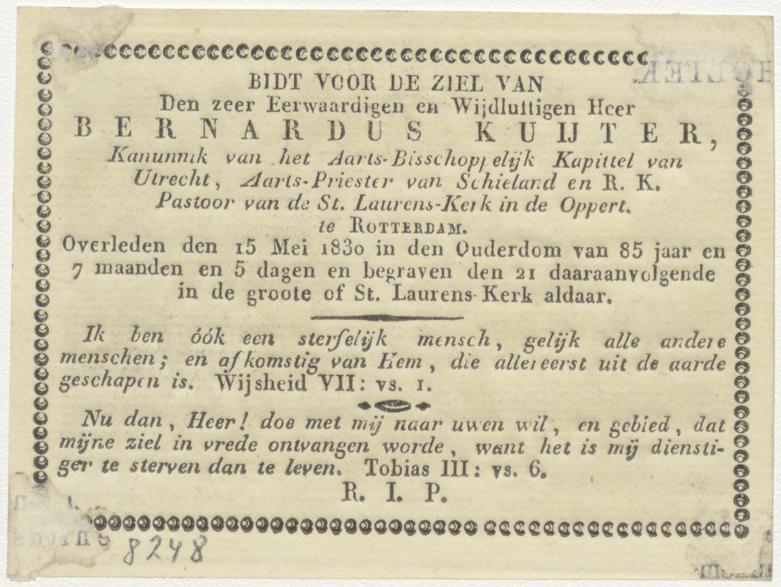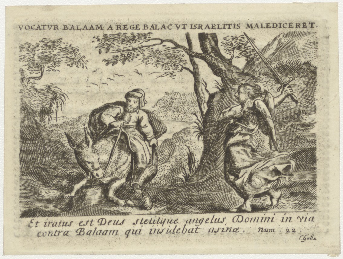 Baleam op ezel met engel (Num.22), kz. Religieus; bid voor ziel Bernardus Kuijter (+1830) pastoor St. Laurens de Oppert, Rotterdam