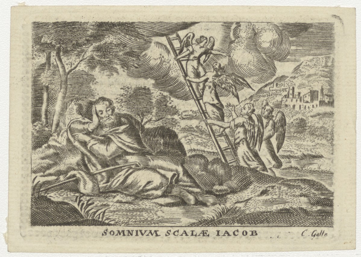 Jacob droomt over de ladder naar de hemel, kz. Religieus; bid voor ziel Bernardus Kuijter (+1830) pastoor St. Laurens de Oppert, Rotterdam