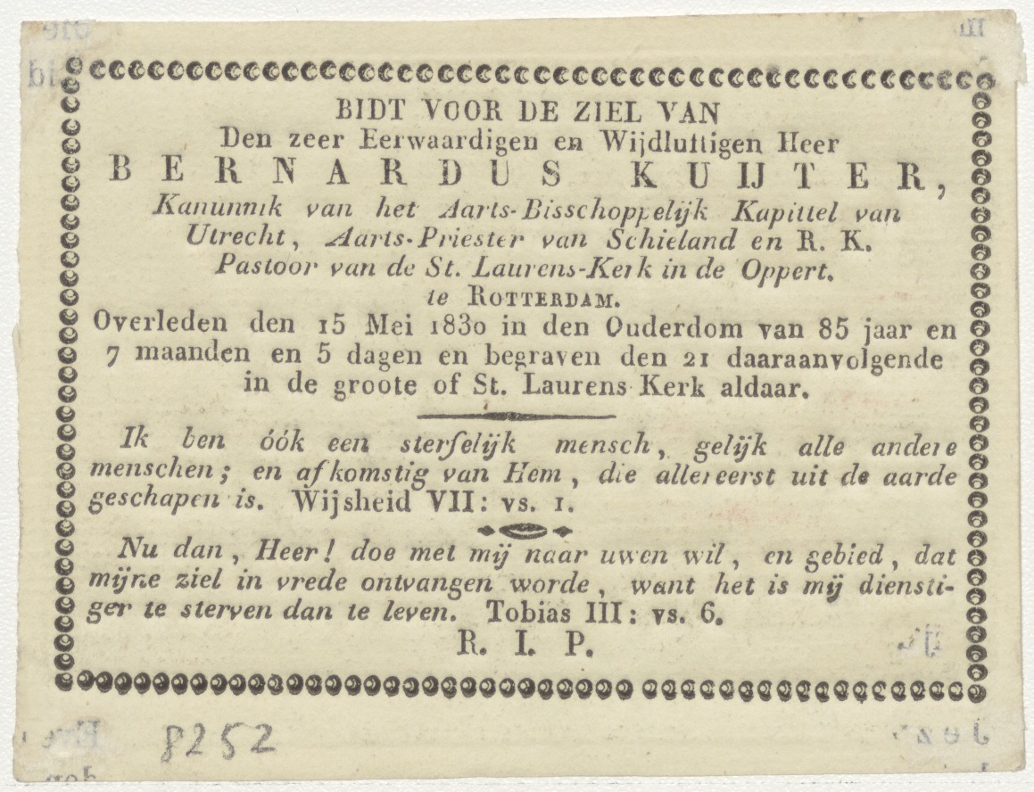 Maria met Christuskind en Johannes, kz. Religieus; bid voor ziel Bernardus Kuijter (+1830) pastoor St. Laurens de Oppert, Rotterdam