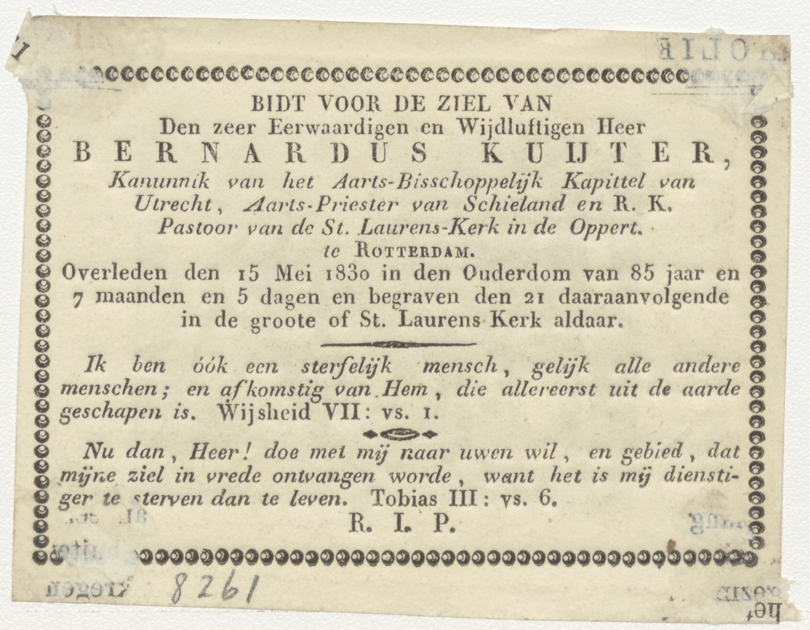 H. Familie, kz. Religieus; bid voor ziel Bernardus Kuijter (+1830) pastoor St. Laurens de Oppert, Rotterdam