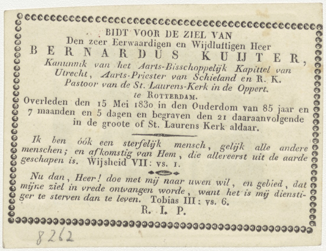H. Familie, kz. Religieus; bid voor ziel Bernardus Kuijter (+1830) pastoor St. Laurens de Oppert, Rotterdam