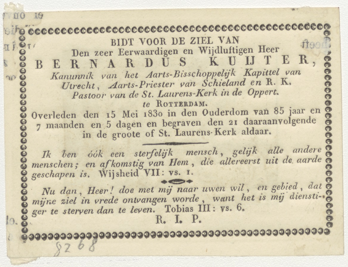 Christuskind en Johannes, kz. Religieus; bid voor ziel Bernardus Kuijter (+1830) pastoor St. Laurens de Oppert, Rotterdam