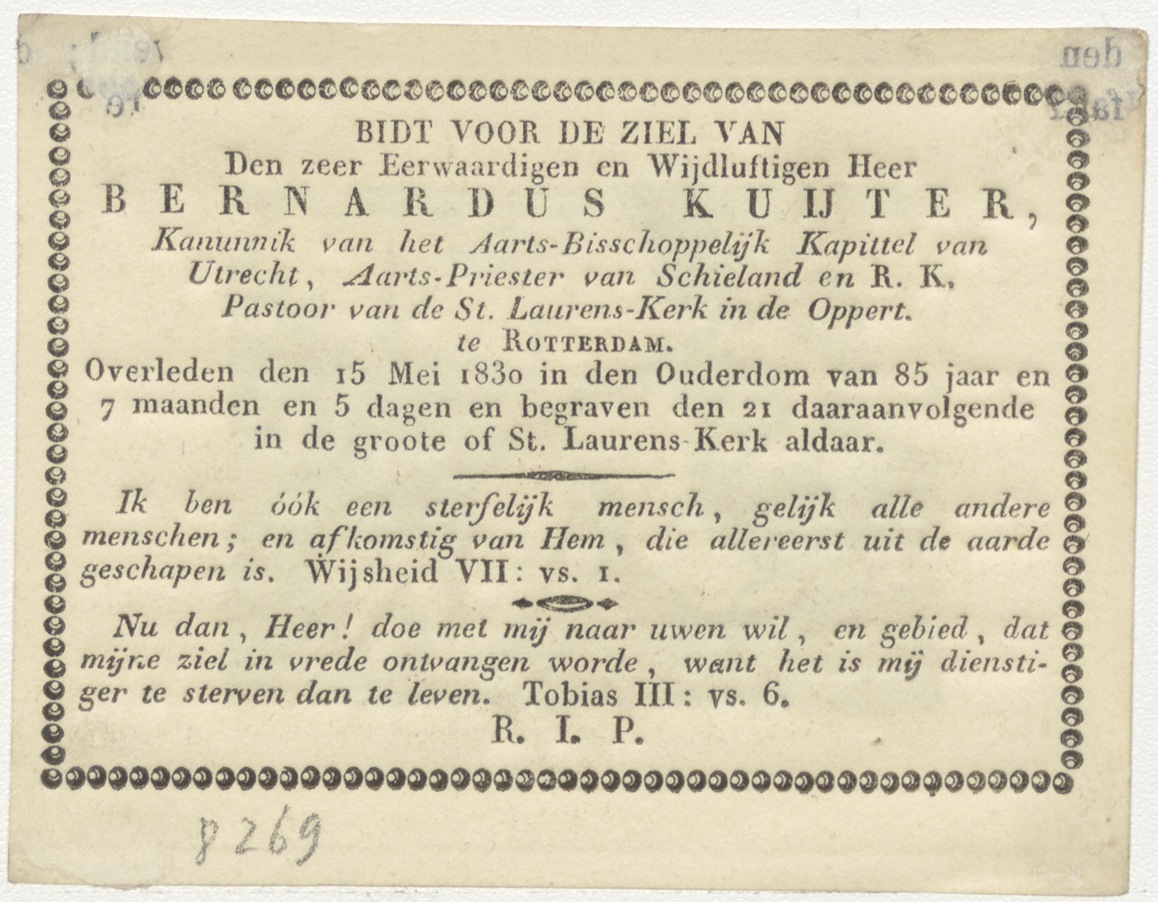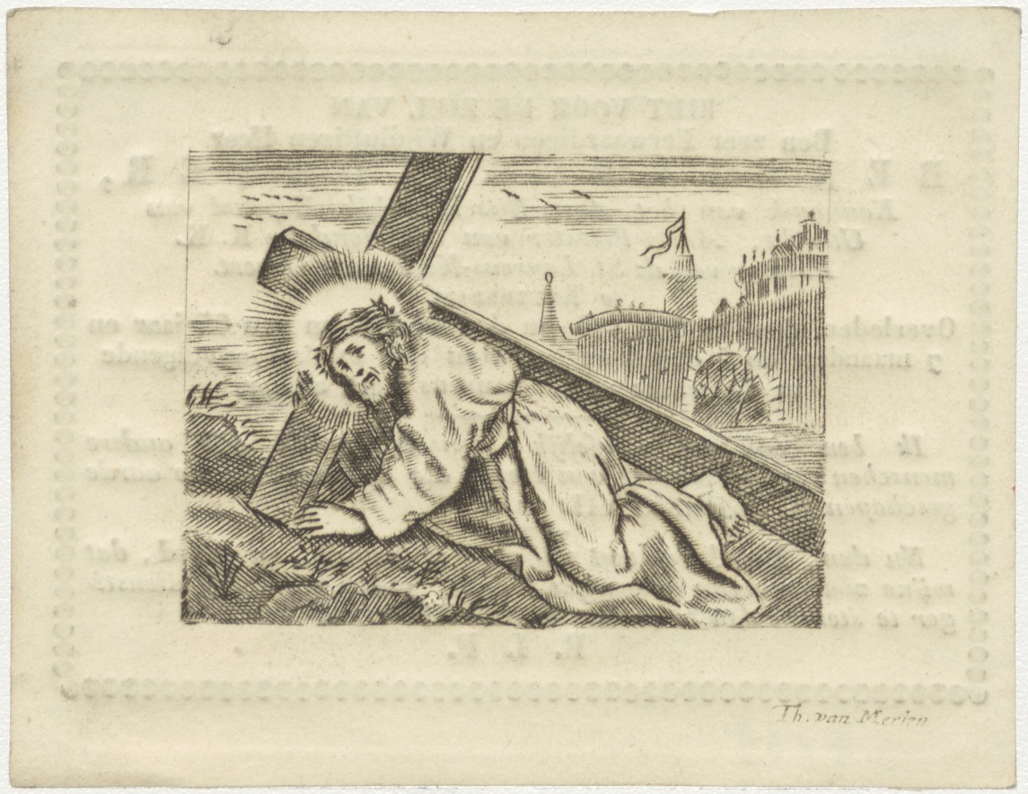 Christus valt met het kruis, kz. Religieus; bid voor ziel Bernardus Kuijter (+1830) pastoor St. Laurens de Oppert, Rotterdam