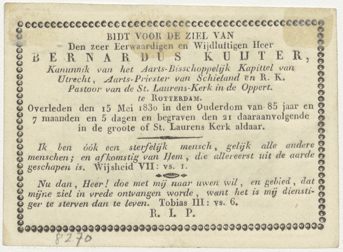 Jacob offert Isaac, kz. Religieus; bid voor ziel Bernardus Kuijter (+1830) pastoor St. Laurens de Oppert, Rotterdam