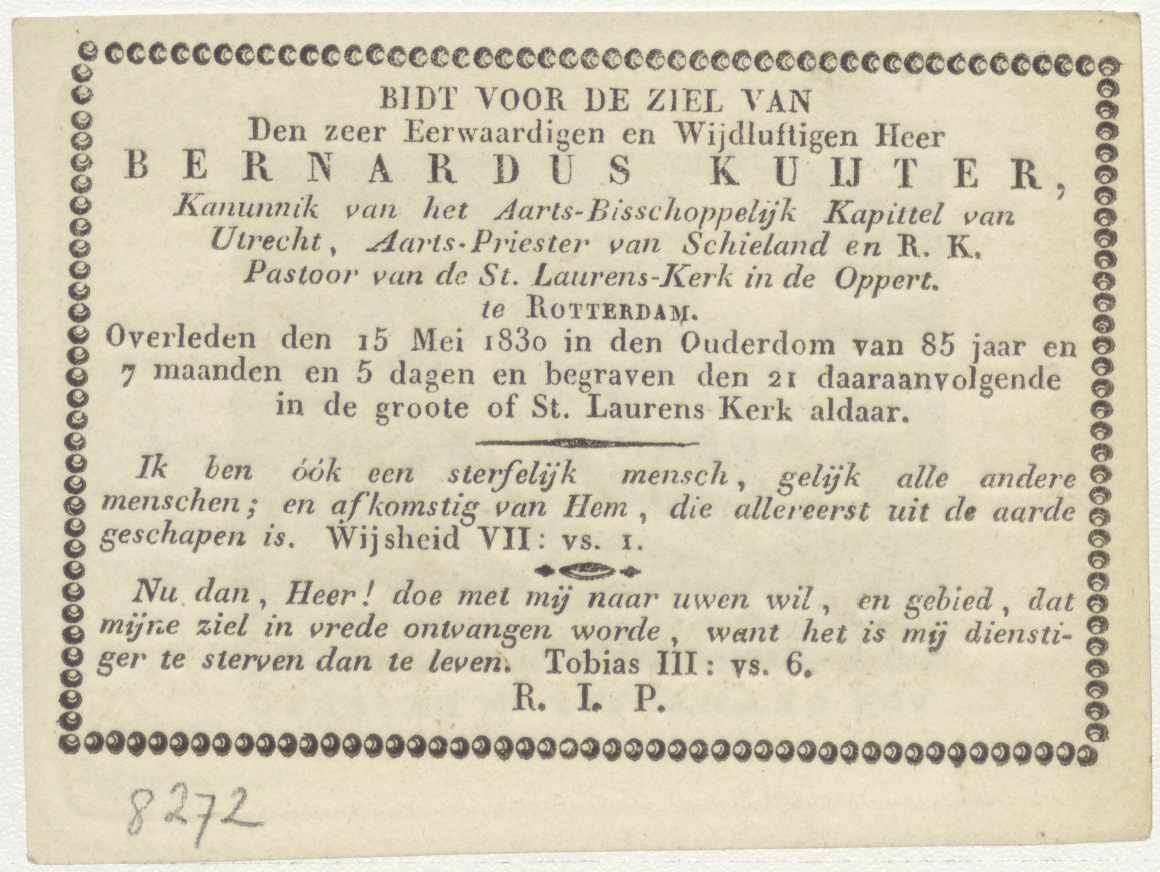 H. Johannes de Doper in de woestijn, kz. Religieus;bid voor ziel Bernardus Kuijter (+1830) pastoor St. Laurens de Oppert, Rotterdam