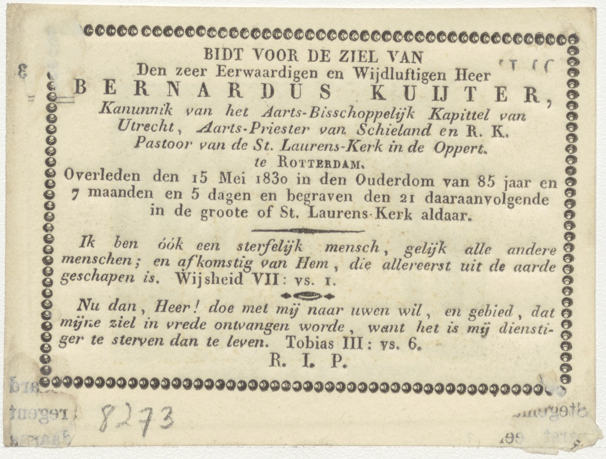 H. Familie, kz. Religieus;bid voor ziel Bernardus Kuijter (+1830) pastoor St. Laurens de Oppert, Rotterdam