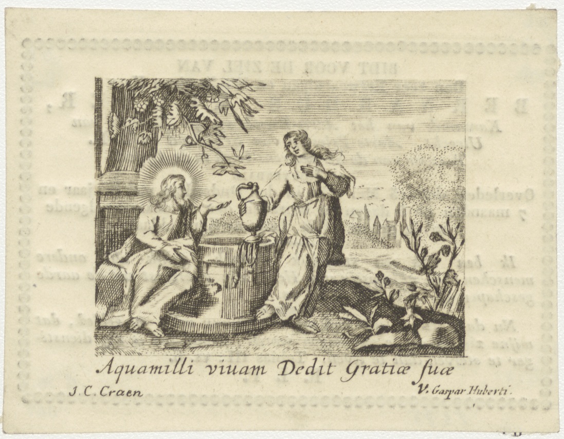 Christus ontmoet de Samaritaanse vrouw aan de bron, kz. Religieus;bid voor ziel Bernardus Kuijter (+1830) pastoor St. Laurens de Oppert, Rotterdam