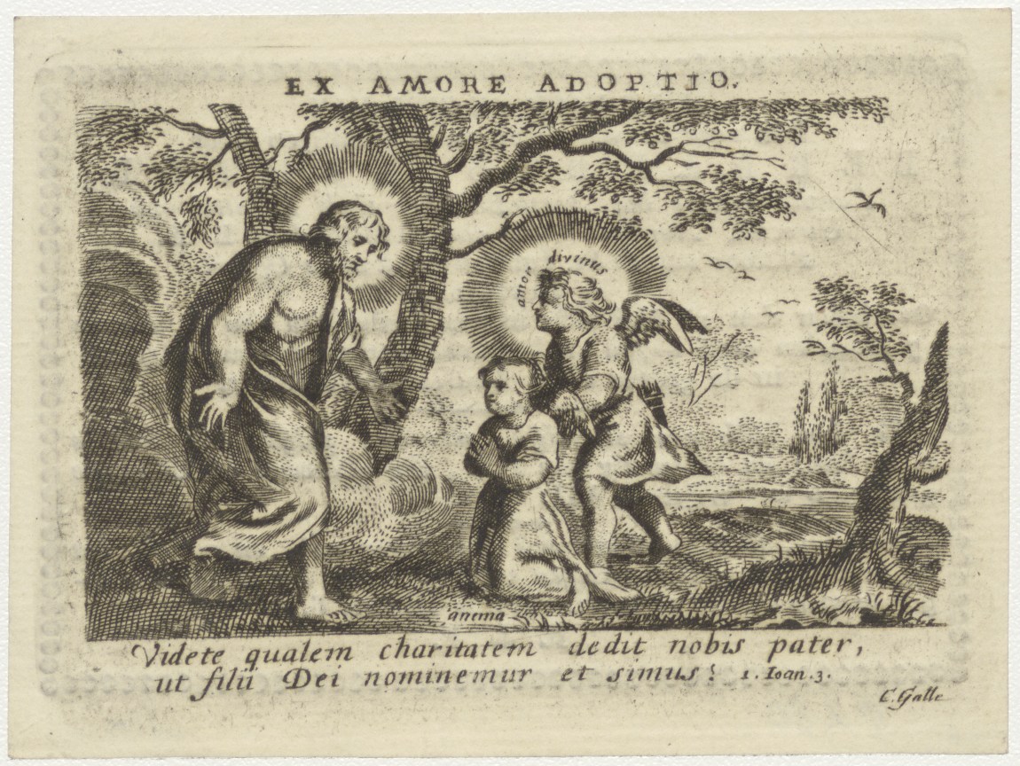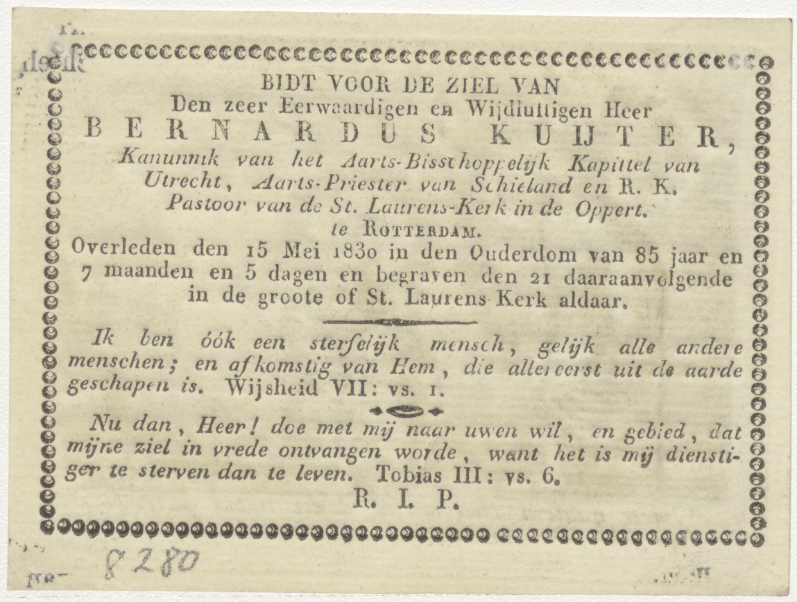 Amor divinus en Anima ontmoeten Christus, kz. Religieus;bid voor ziel Bernardus Kuijter (+1830) pastoor St. Laurens de Oppert, Rotterdam