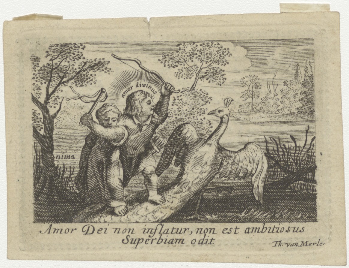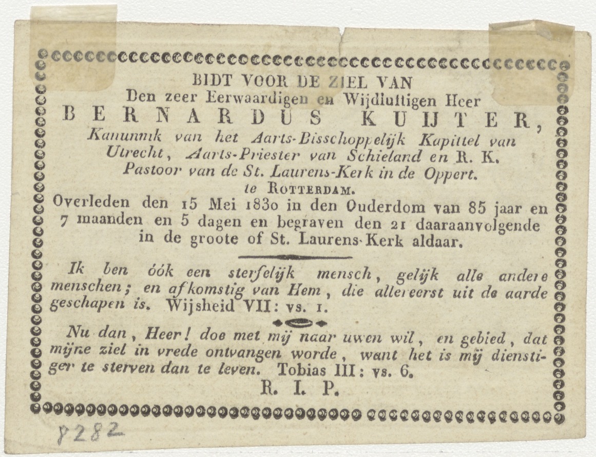 Amor divinus en Anima met pauw, kz. Religieus;bid voor ziel Bernardus Kuijter (+1830) pastoor St. Laurens de Oppert, Rotterdam