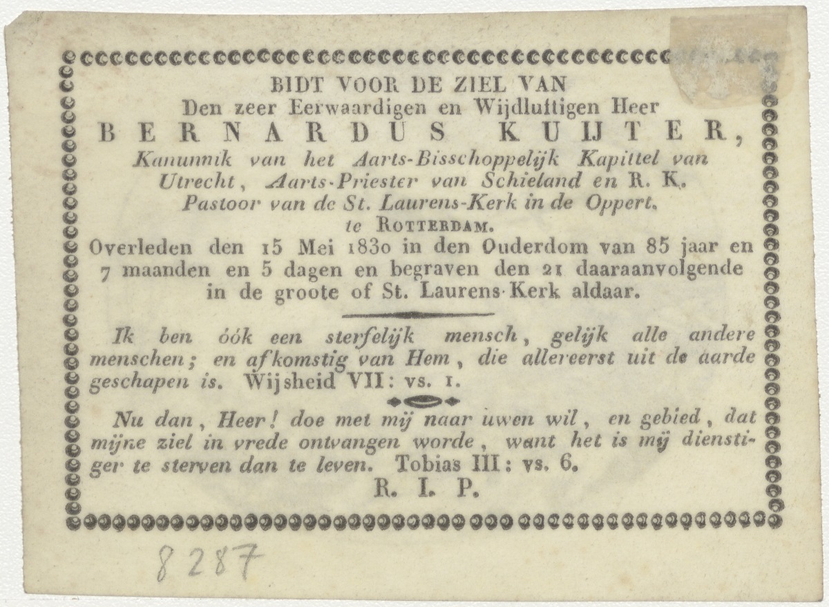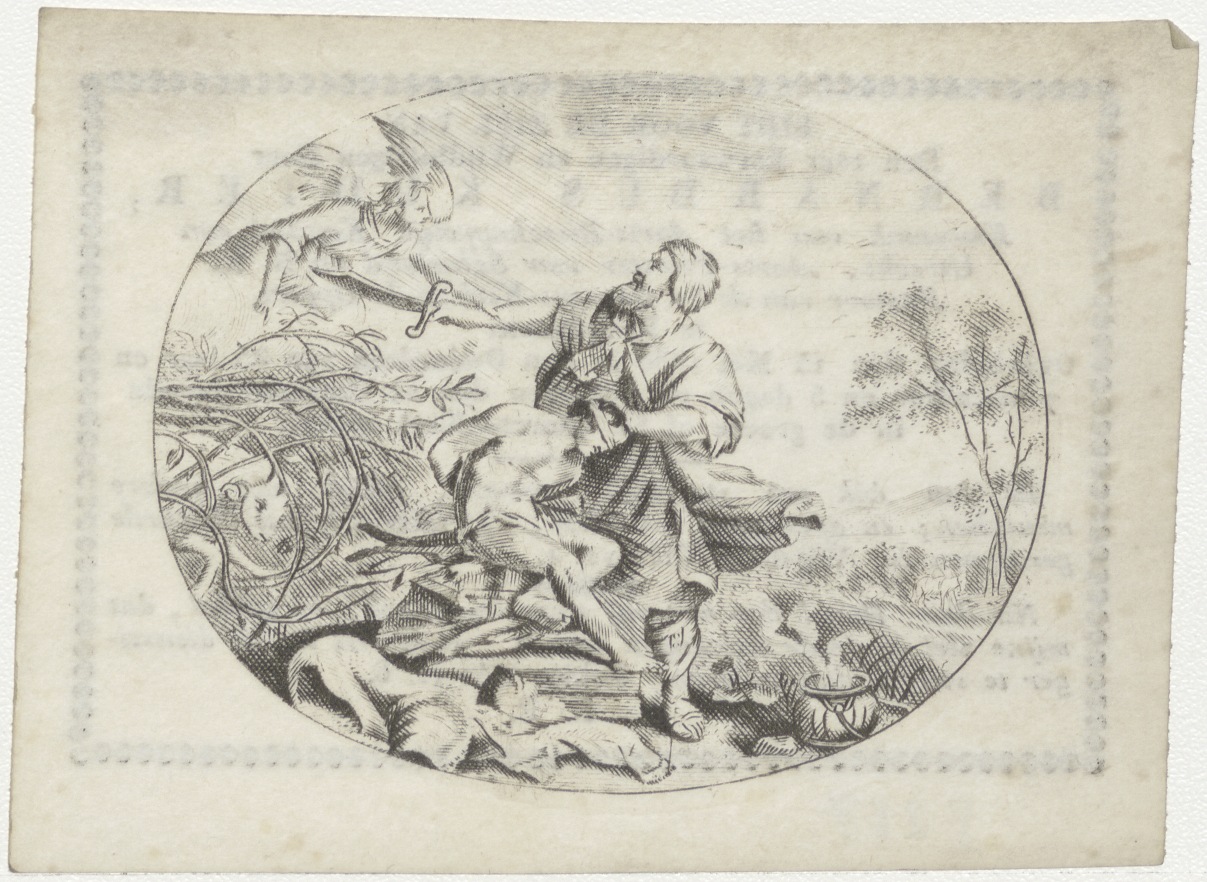 Jacob offert Isaac, kz. Religieus;bid voor ziel Bernardus Kuijter (+1830) pastoor St. Laurens de Oppert, Rotterdam