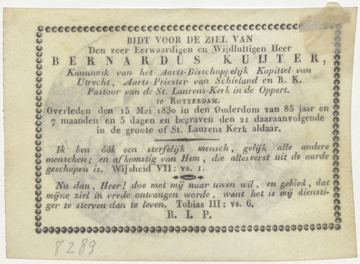 H. Familie, kz. Religieus;bid voor ziel Bernardus Kuijter (+1830) pastoor St. Laurens de Oppert, Rotterdam