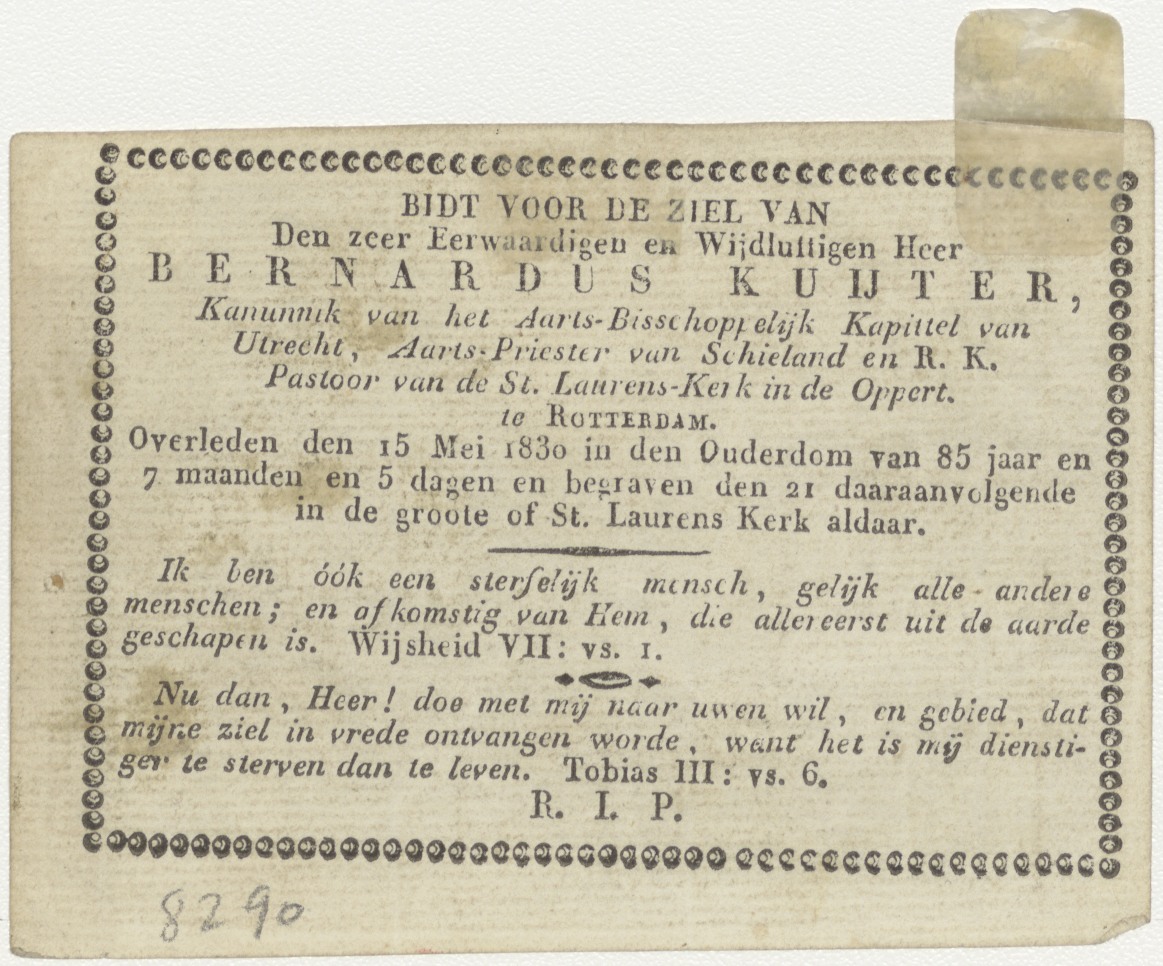 H. Maria met Christuskind en Johannes, kz. Religieus;bid voor ziel Bernardus Kuijter (+1830) pastoor St. Laurens de Oppert, Rotterdam