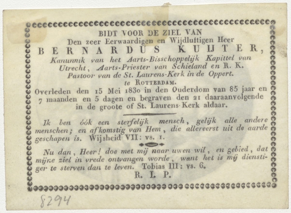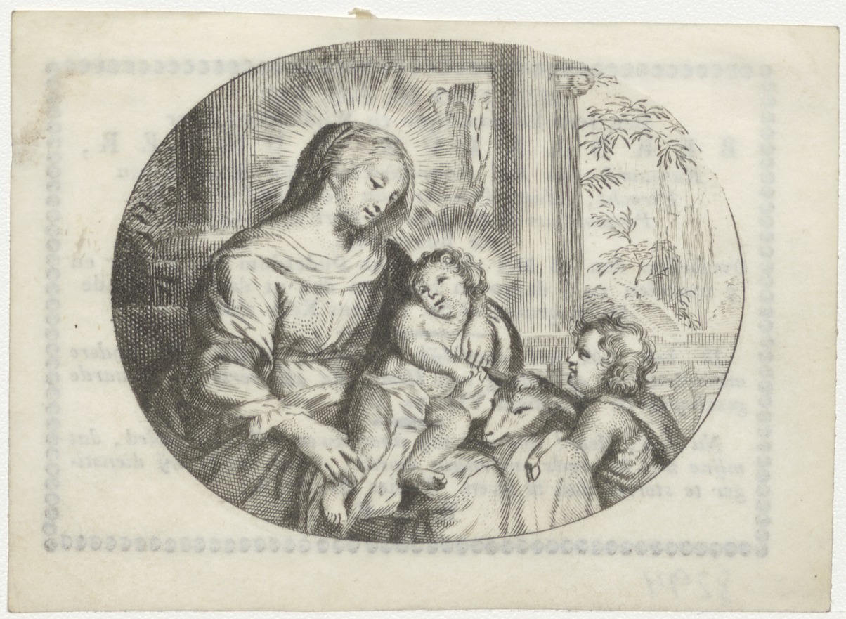 Maria met Christuskind en Johannes, kz. Religieus; bid voor ziel Bernardus Kuijter (+1830) pastoor St. Laurens de Oppert, Rotterdam