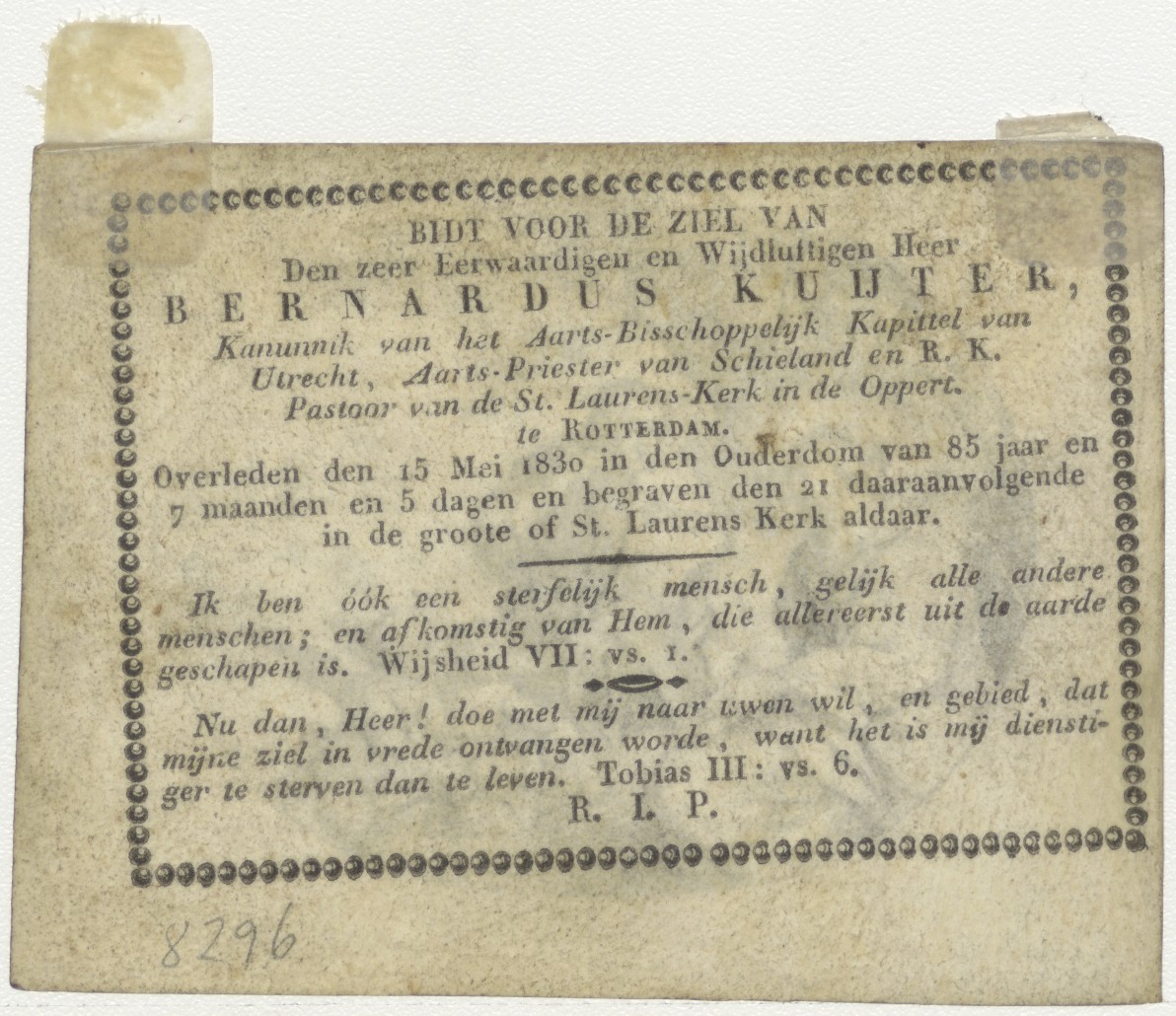 H. Familie, kz. Religieus; bid voor ziel Bernardus Kuijter (+1830) pastoor St. Laurens de Oppert, Rotterdam