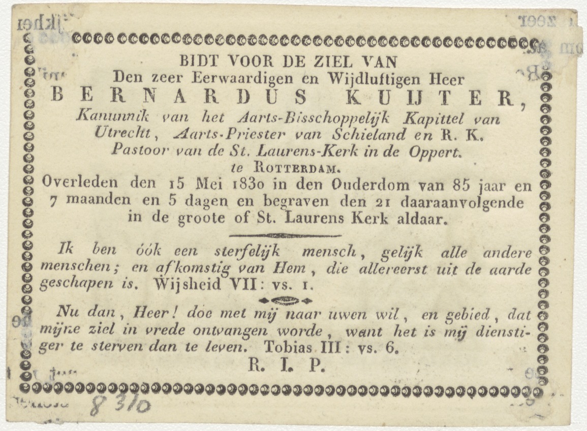 Hemelvaart van Christus, kz. Religieus; bid voor ziel Bernardus Kuijter (+1830) pastoor St. Laurens de Oppert, Rotterdam