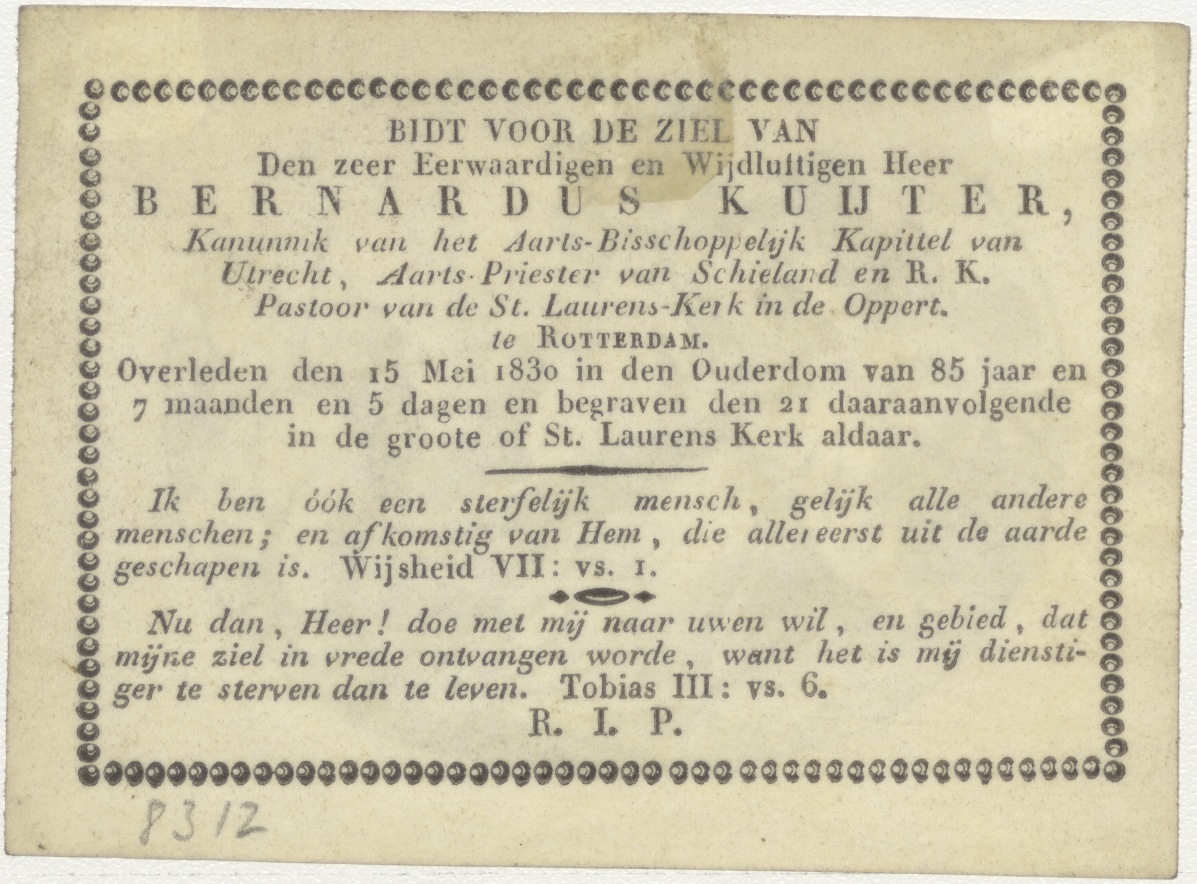Christus valt met het kruis, kz. Religieus; bid voor ziel Bernardus Kuijter (+1830) pastoor St. Laurens de Oppert, Rotterdam