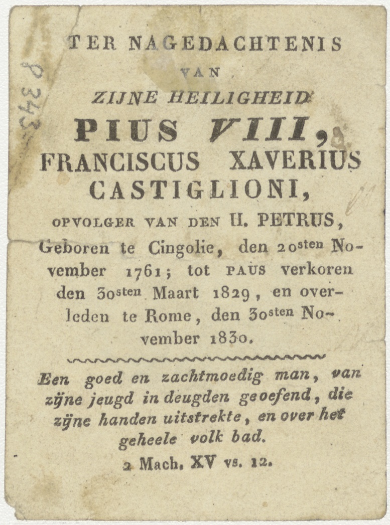 Christuskind en Johannes, kz. Religieus; bid voor ziel paus Pius VIII (+1830) paus van Rome