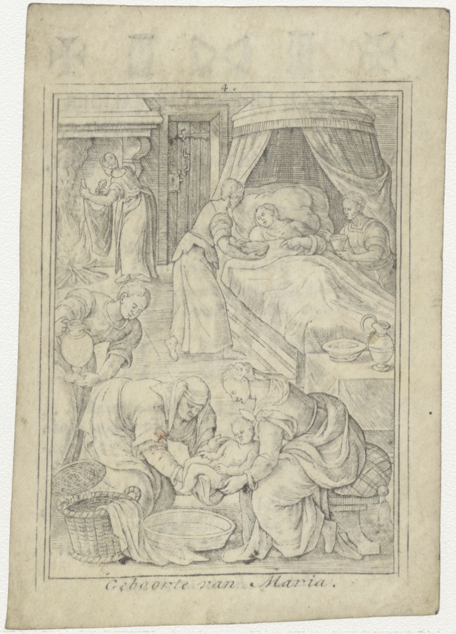 Het leven der Heilige Maagd Maria (serie): 4. Geboorte van Maria, kz. Religieus; bid voor ziel Wijnandus Hermanus van Bogerijen (+1831) kanunnik Utrecht, pastoor H. Ursula Delft