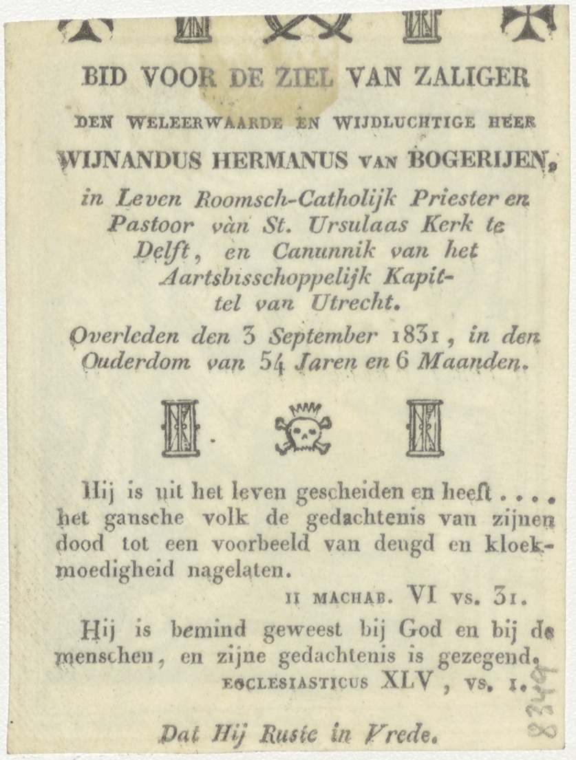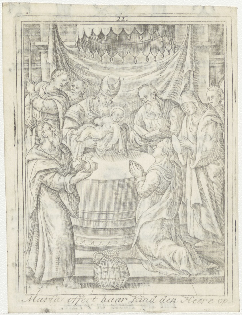 Het leven der Heilige Maagd Maria (serie): 11. Maria offert haar kind de Heere op, kz. Religieus; bid voor ziel Wijnandus Hermanus van Bogerijen (+1831) kanunnik Utrecht, pastoor H. Ursula Delft