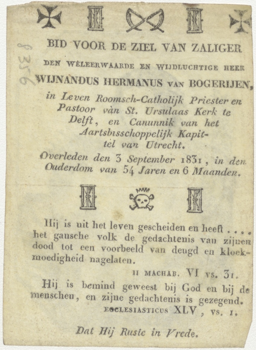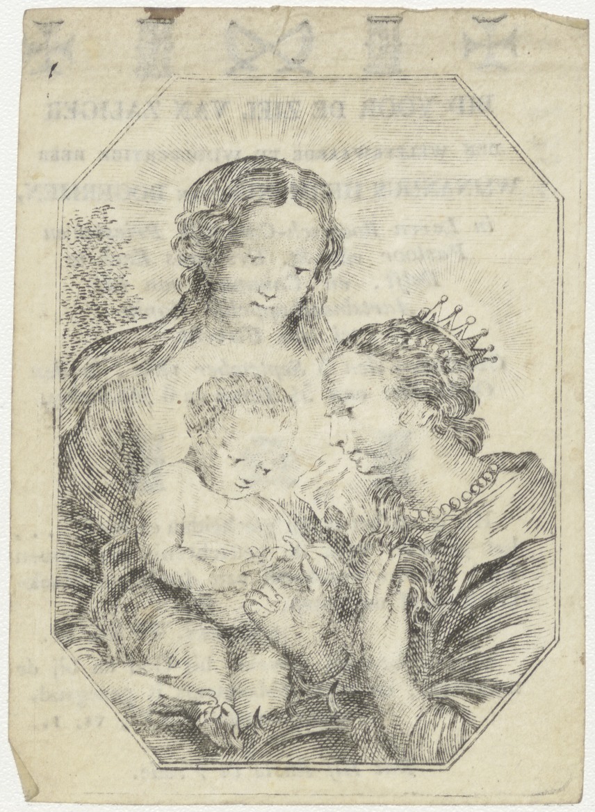 Mystieke huwelijk van H. Catharina van Alexandrië, kz. Religieus; bid voor ziel Wijnandus van Bogerijen (+1831) kanunnik Utrecht, pastoor H. Ursula Delft
