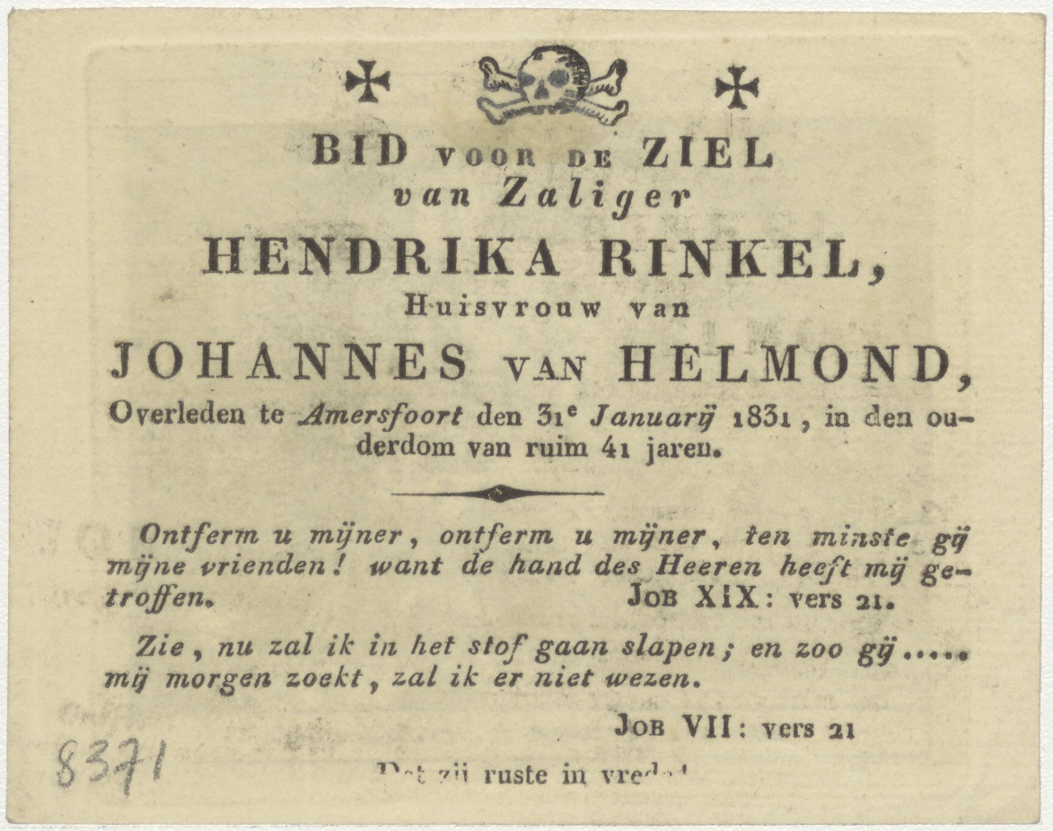 Instelling van 't avondmaal, Christus en apostelen, kz. Bid voor ziel Rinkel-van Helmond (+1831) Amersfoort