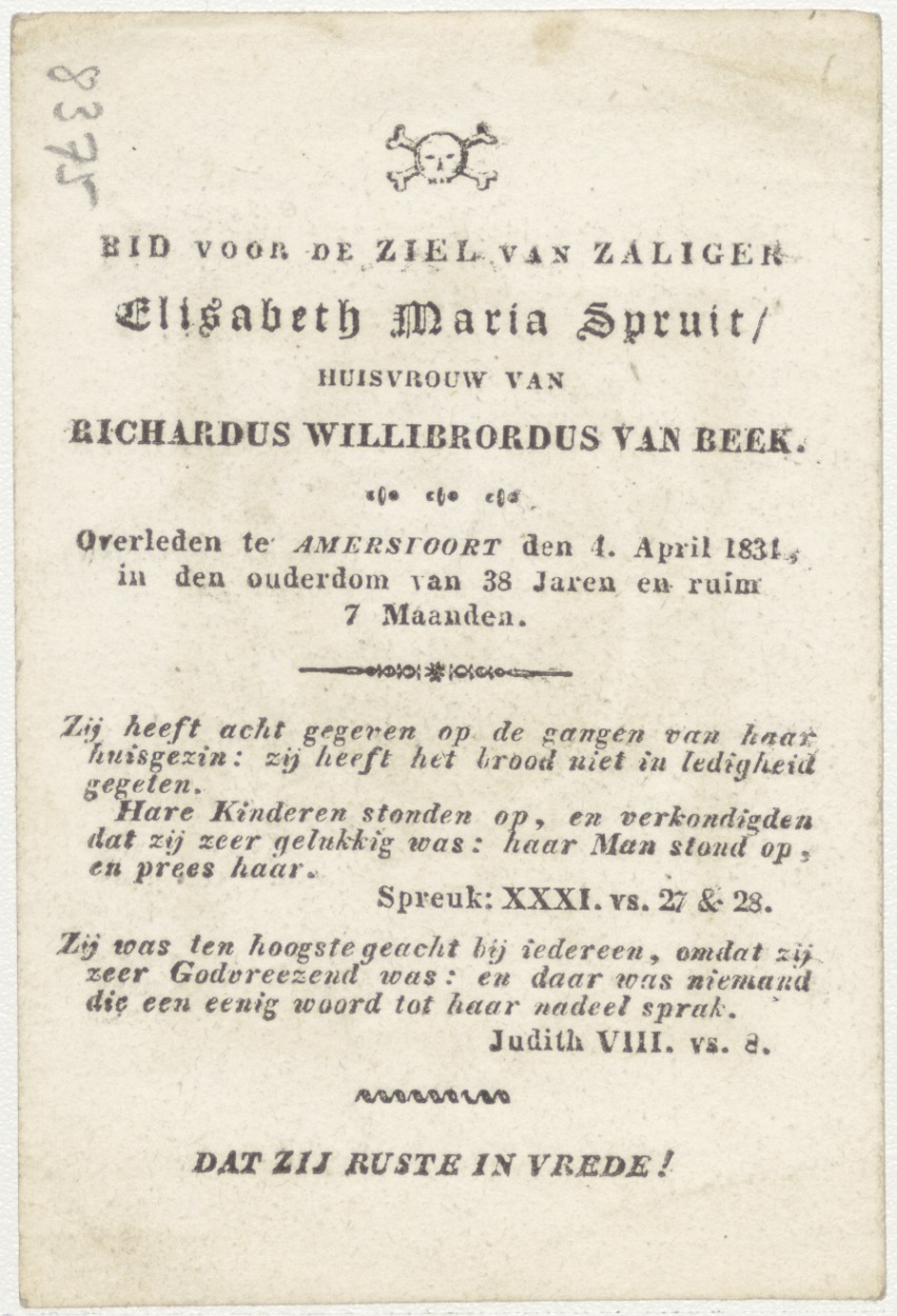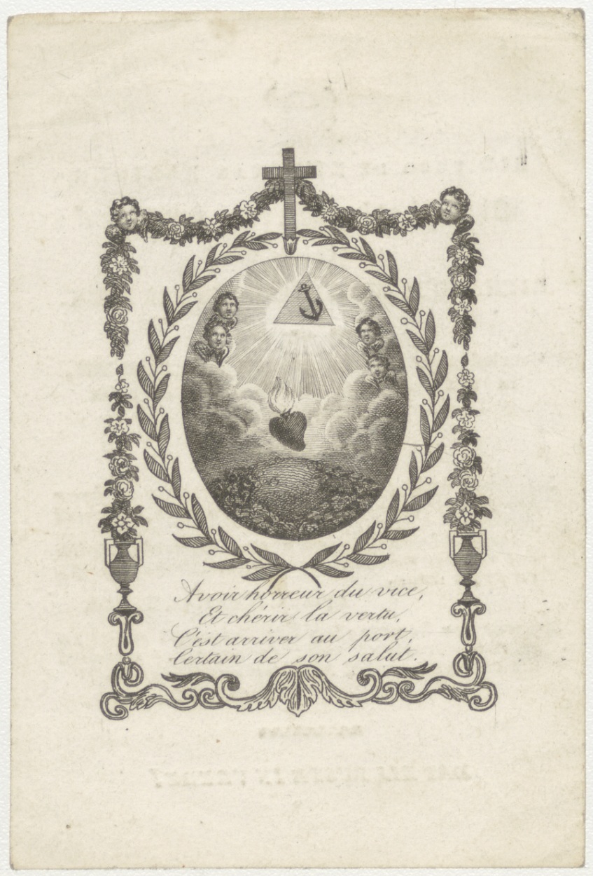 Hart met anker en alziend oog (Frans), kz. Bid voor ziel Spruit-van Beek (+1831) Amersfoort