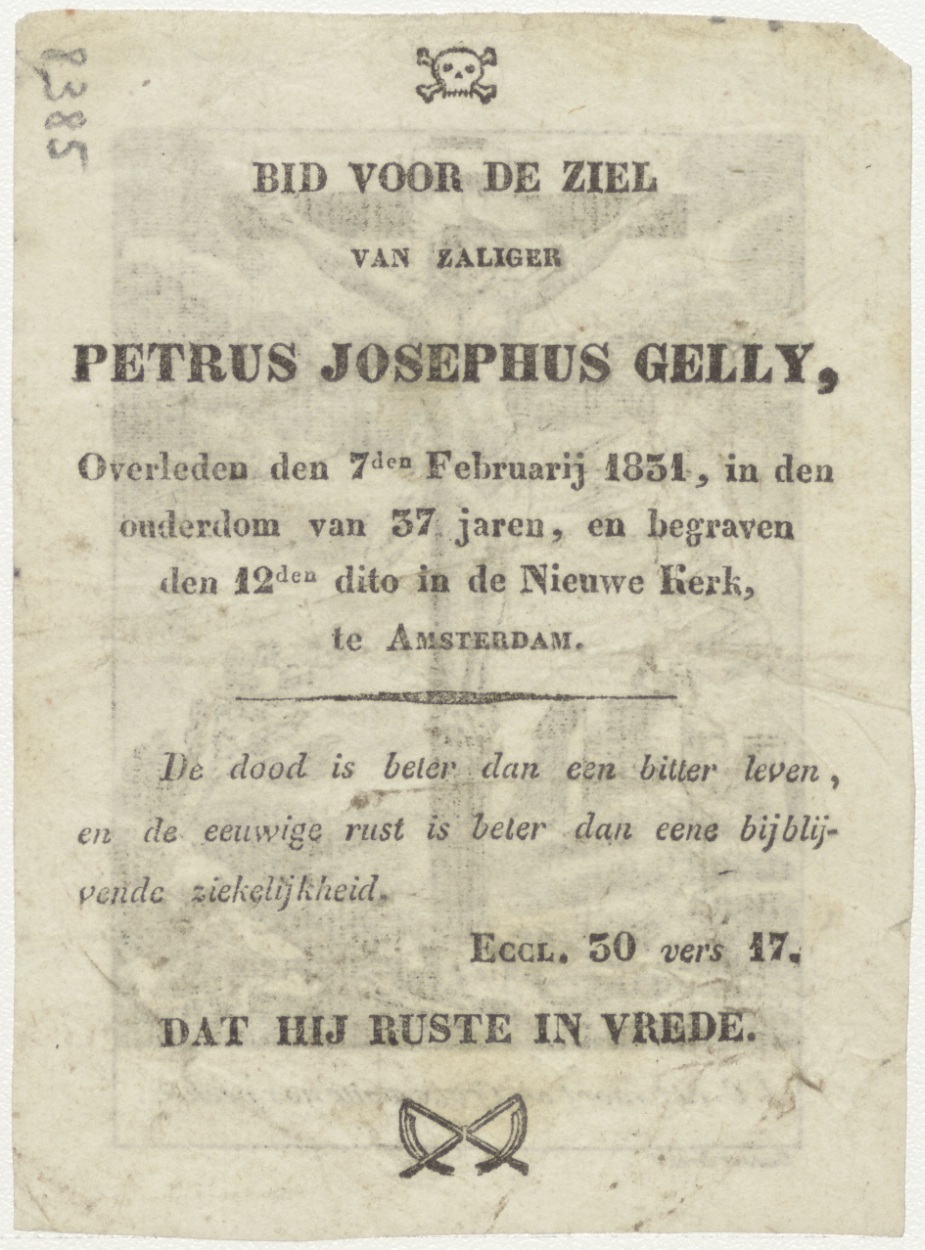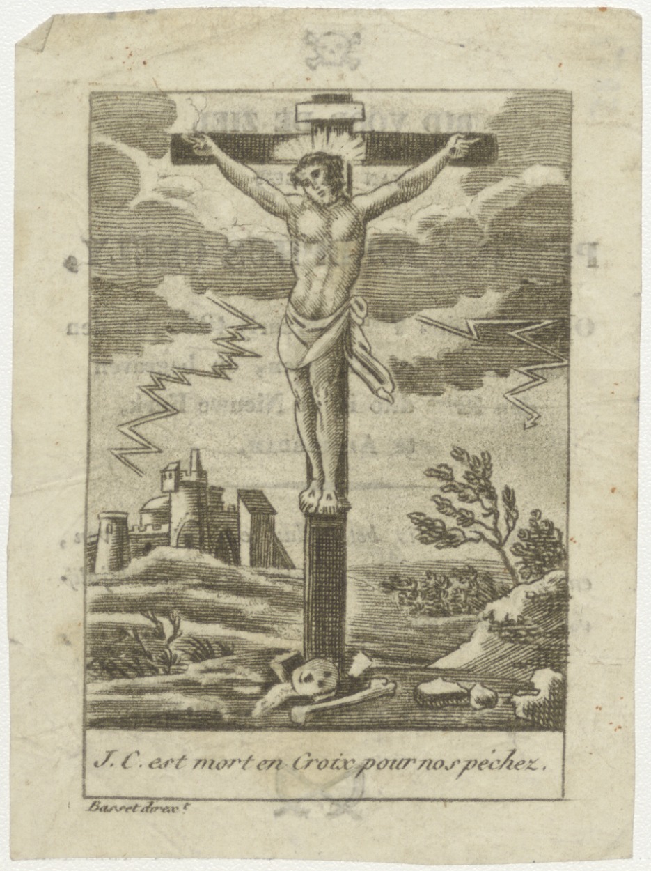 Gekruisigde Christus (Frans), kz. Bid voor ziel Gelly (+1831) Amsterdam