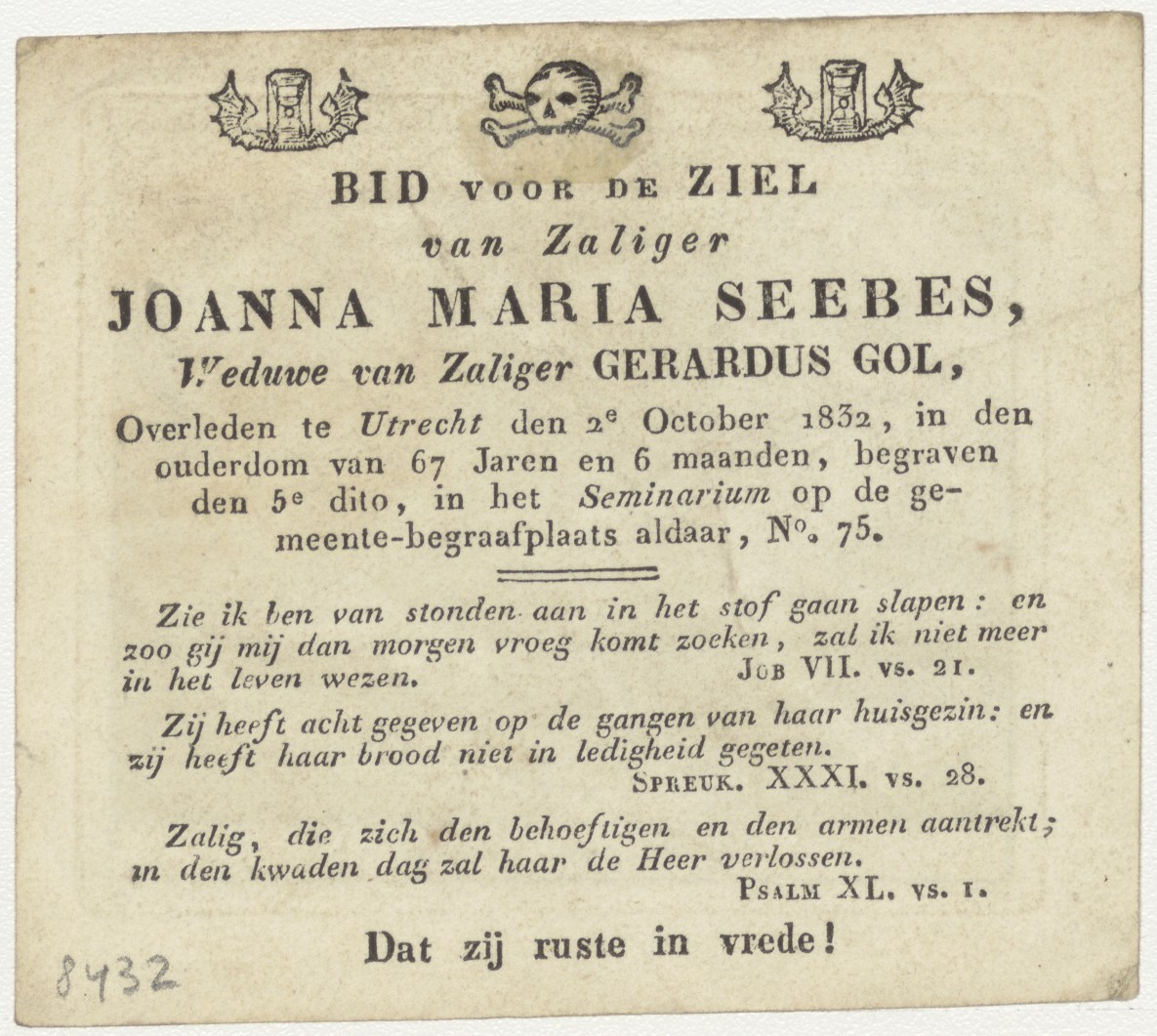 Vlucht van Hager, kz. Bid voor ziel Gol-Seebes (+1832) Utrecht