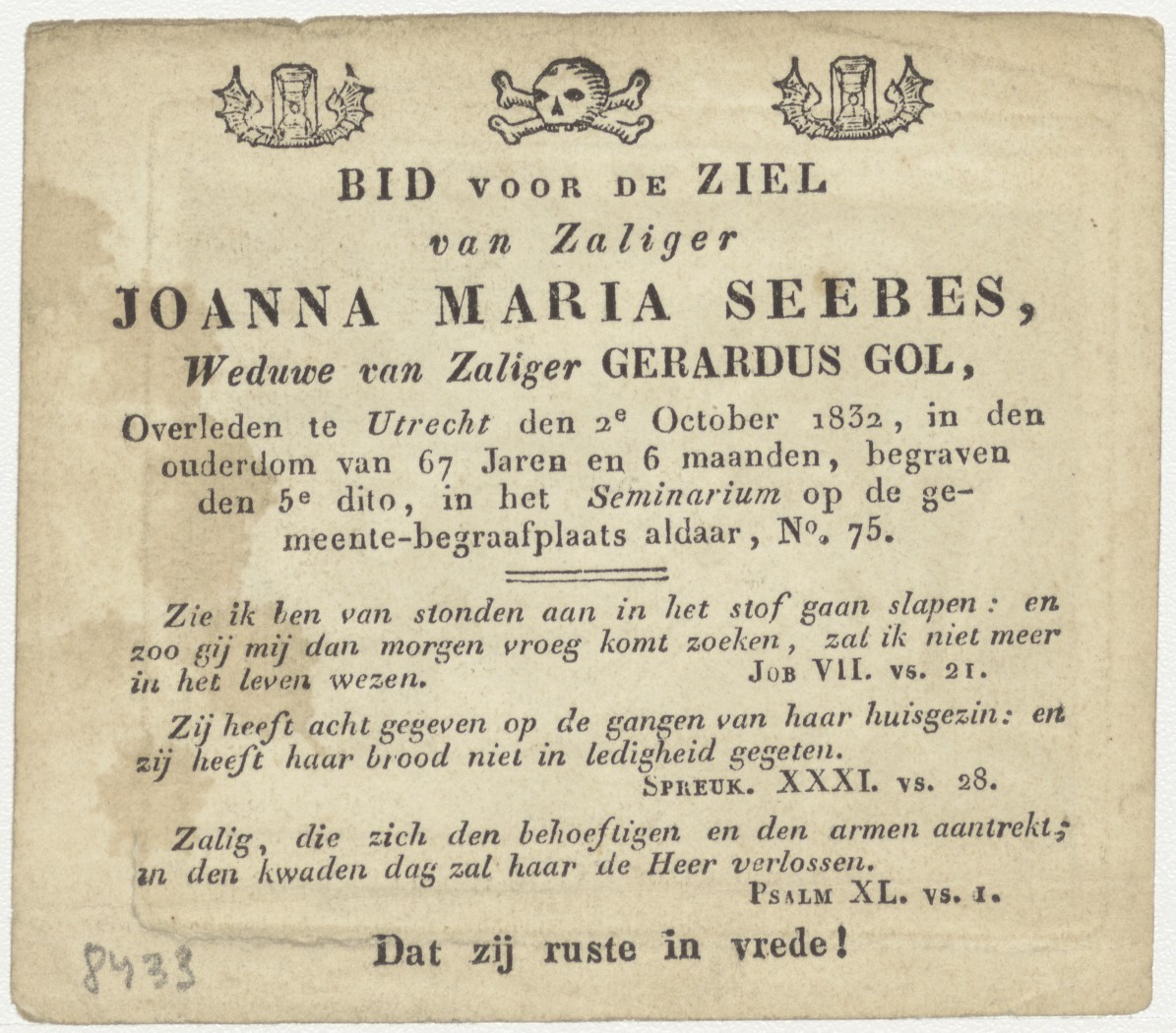Annunciatie, kz. Bid voor ziel Gol-Seebes (+1832) Utrecht
