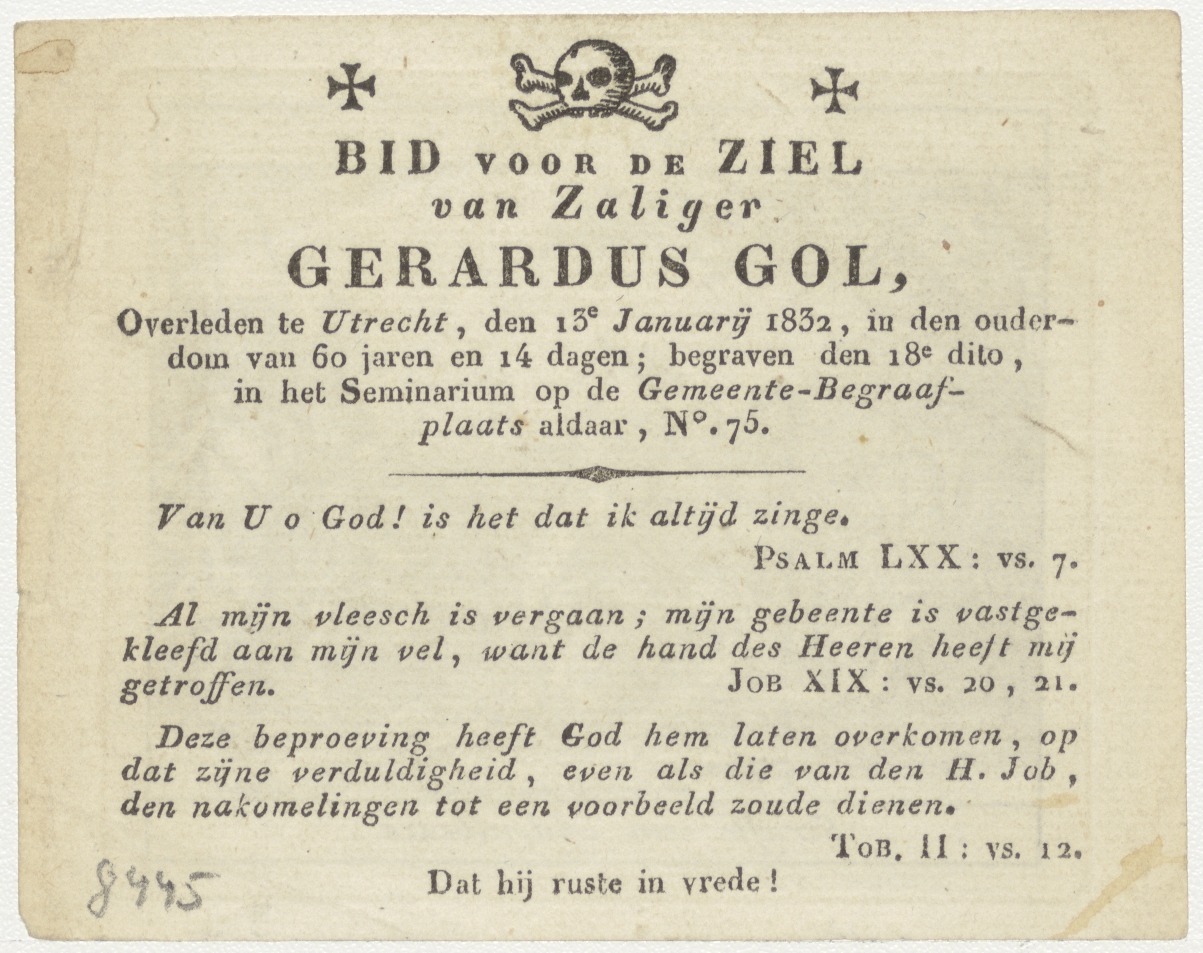 Straffe van Adonibezel, kz. Bid voor ziel Gol (+1832) Utrecht
