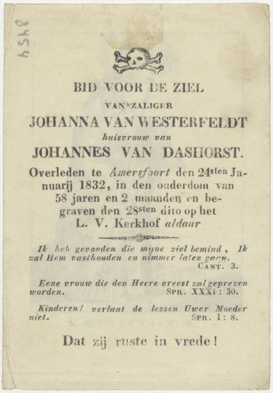 H. Wilfridus, kz. Bid voor ziel Westerfeld-van Dashoest (+1832) Amersfoort