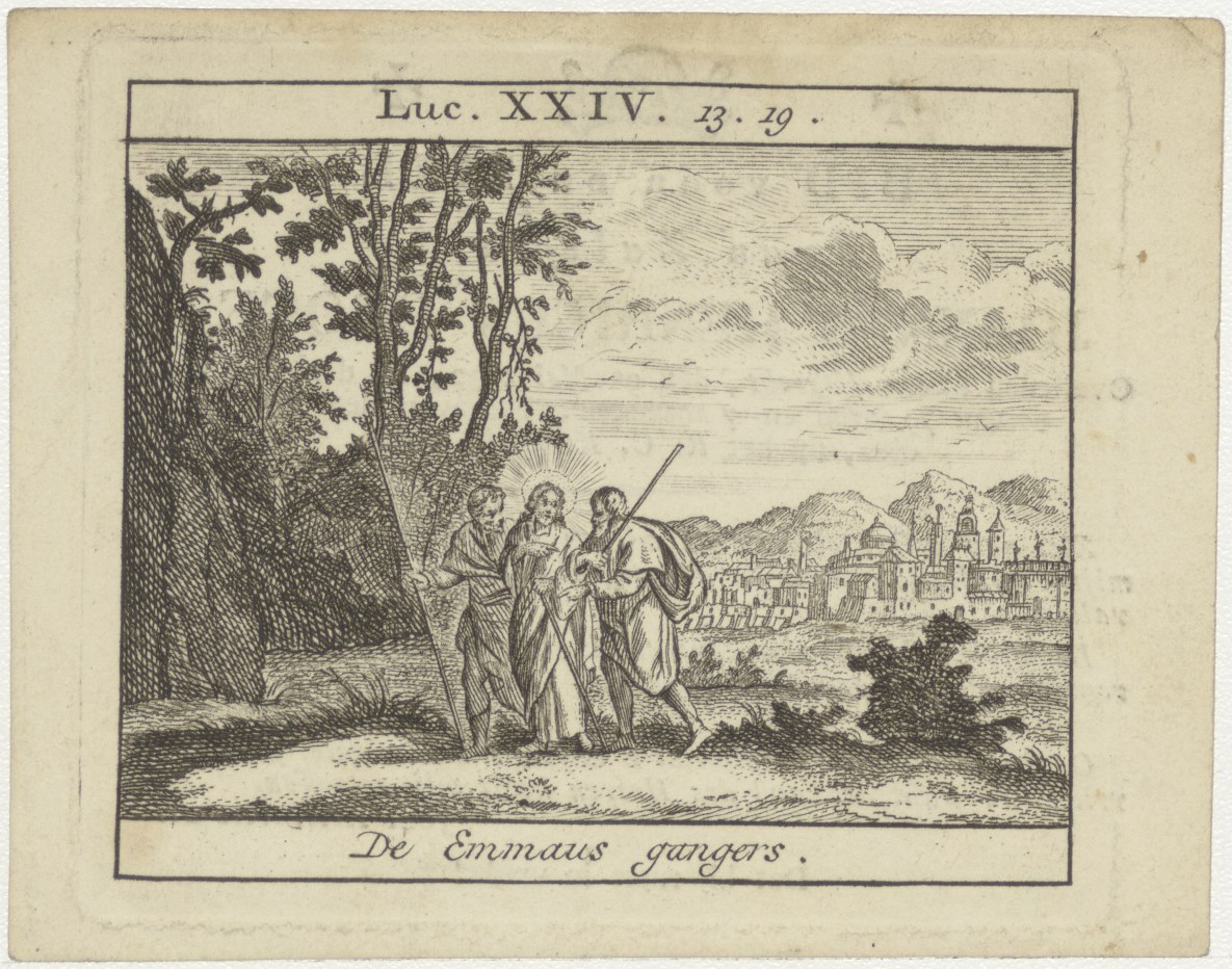 Christus en de Emmausgangers (Luc. 24:13-19), kz. Bid voor ziel Hooge (+1832) Utrecht