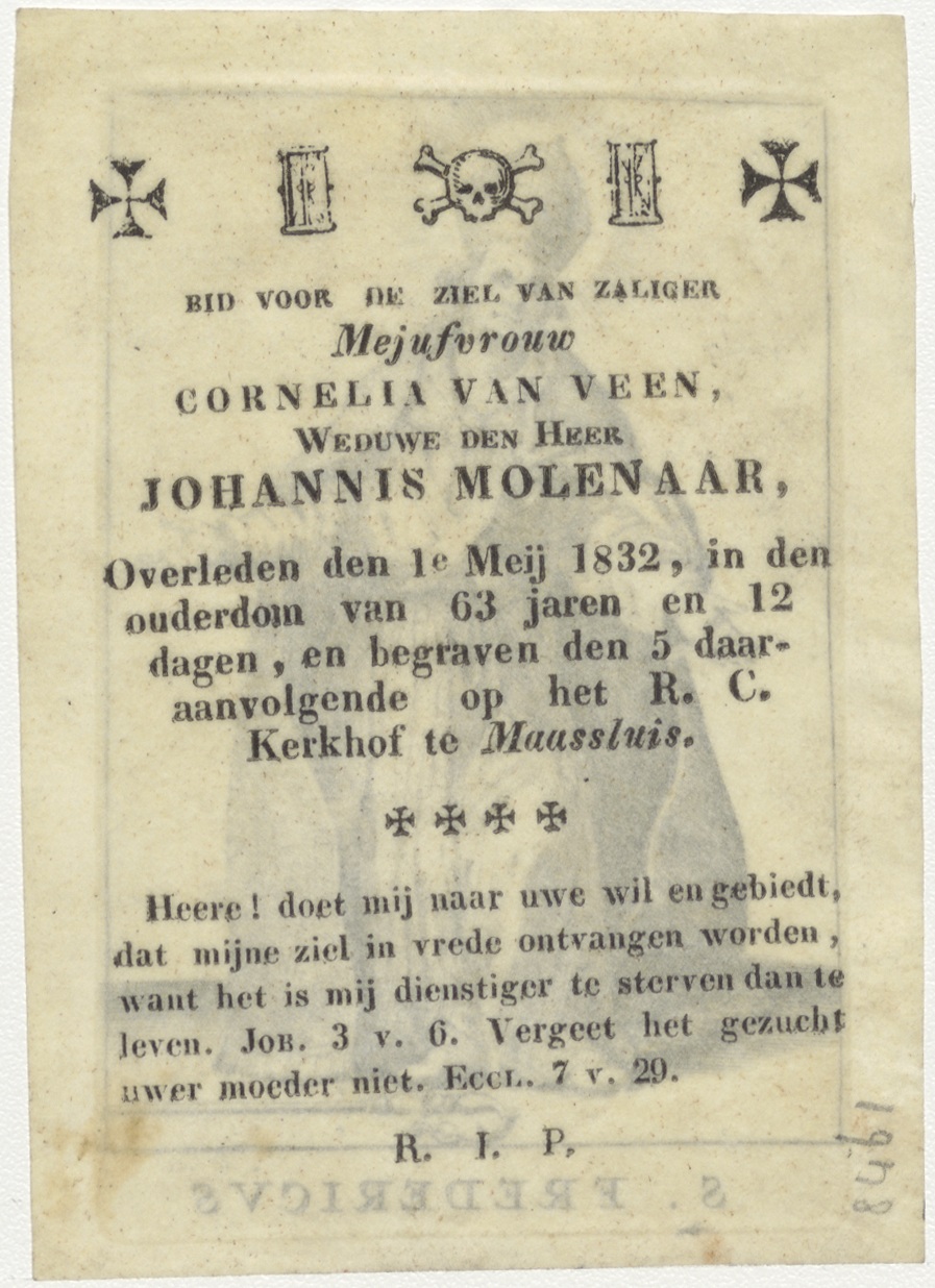 H. Fredericus, kz. Bid voor ziel Van Veen-Molenaar (+1832) Maassluis