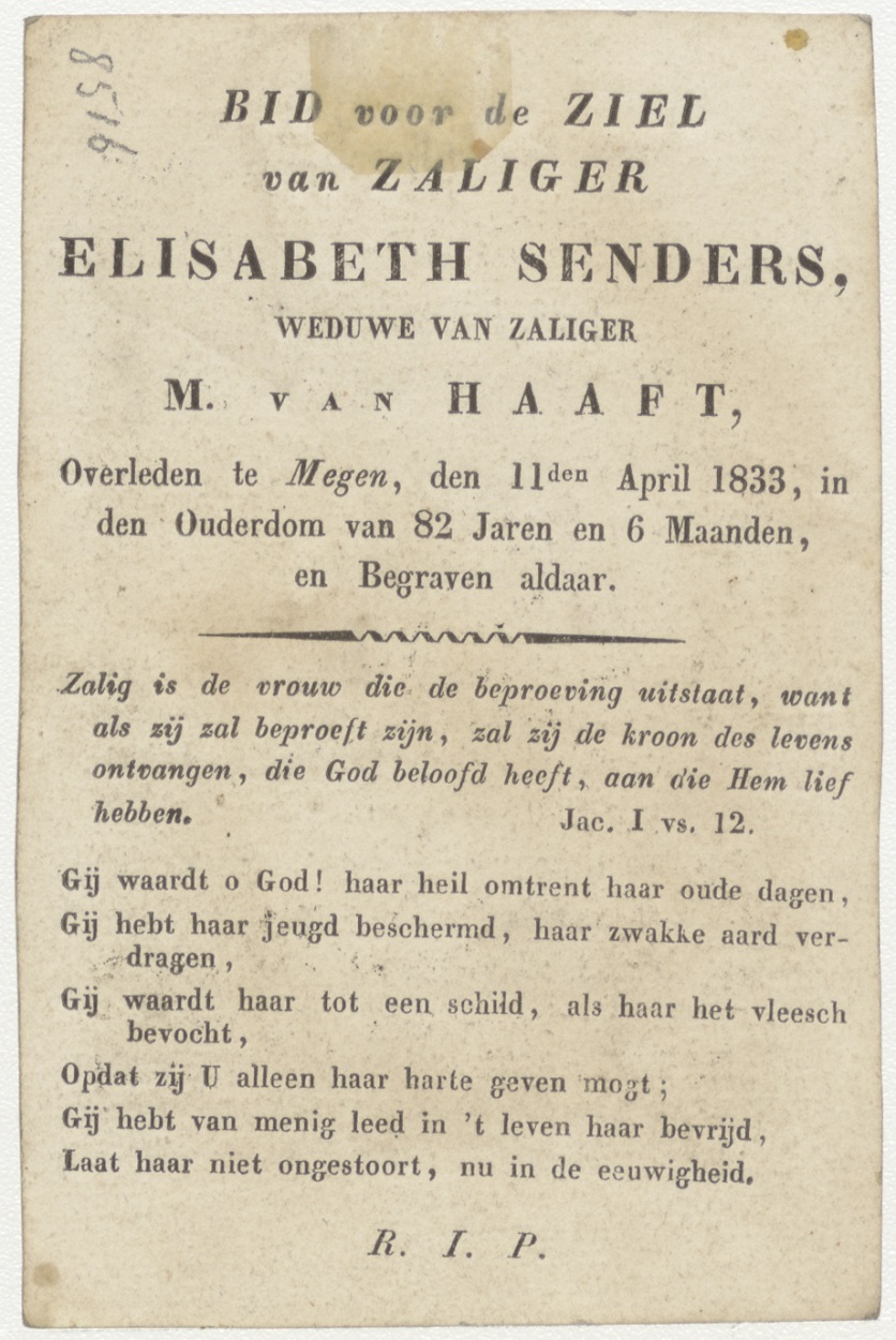 H. Entienne (Frans), kz. Bid voor ziel Senders-Haaft (+1833) Megen