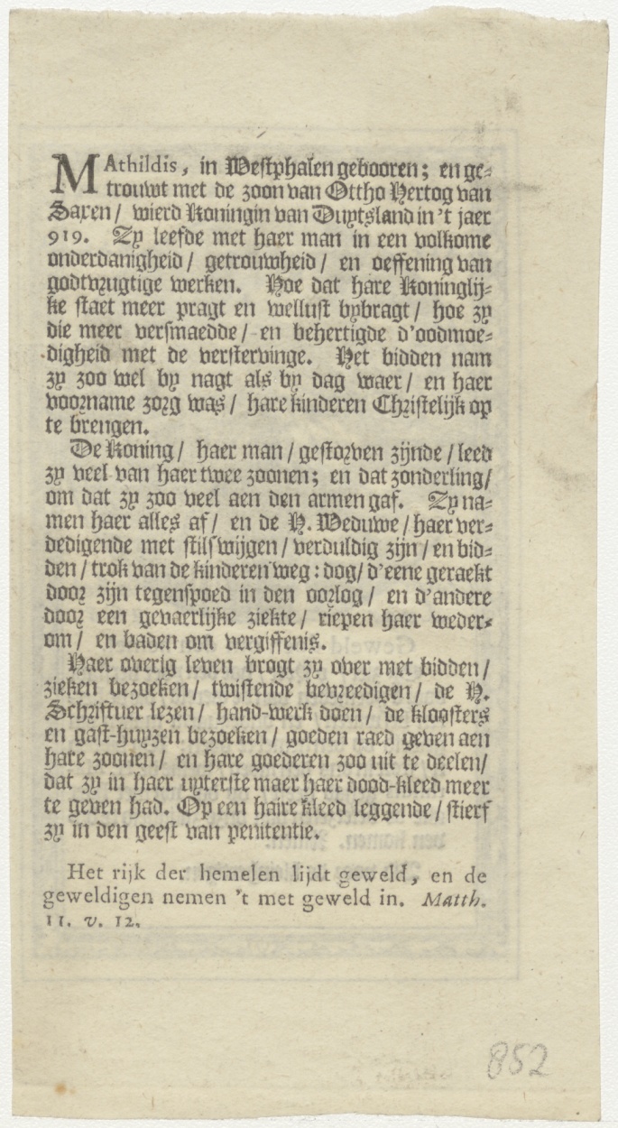 H. Mathildis Wedu, naamfeest (14 mei), kz. levensbeschrijving
