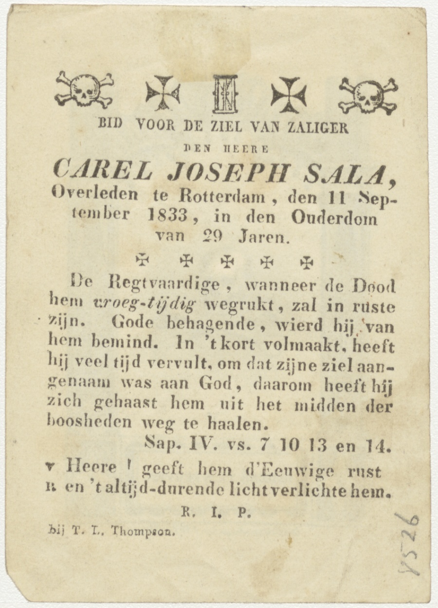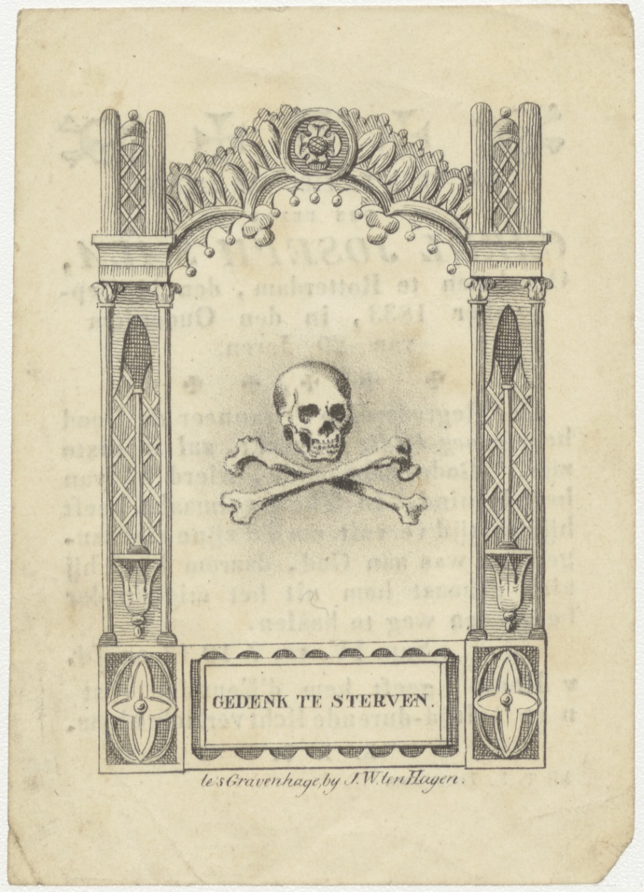 Schedel, gedenk te sterven, kz. Bid voor ziel Sala (+1833) Rotterdam