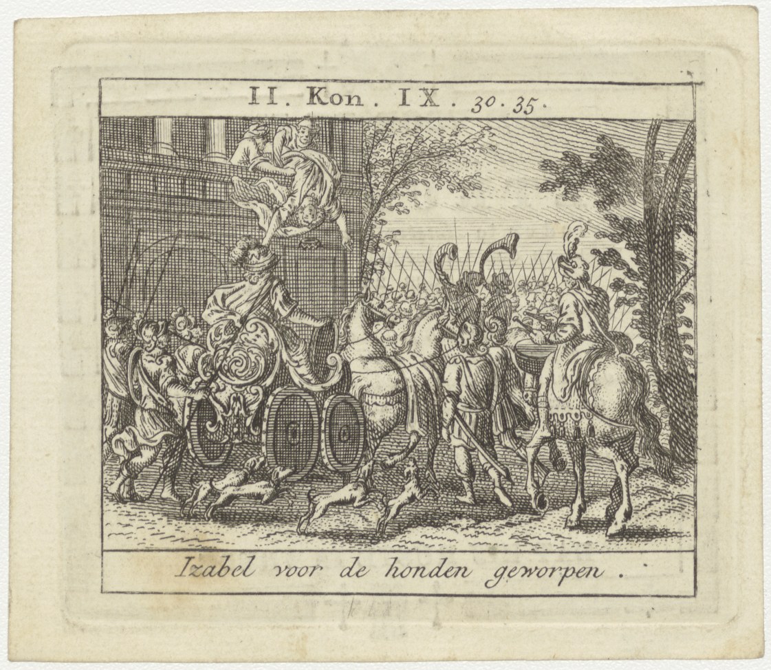 Izabel voor de honden geworpen (1Kon.9:30-35), kz. Bid voor ziel Loos (+1834) Amsterdam