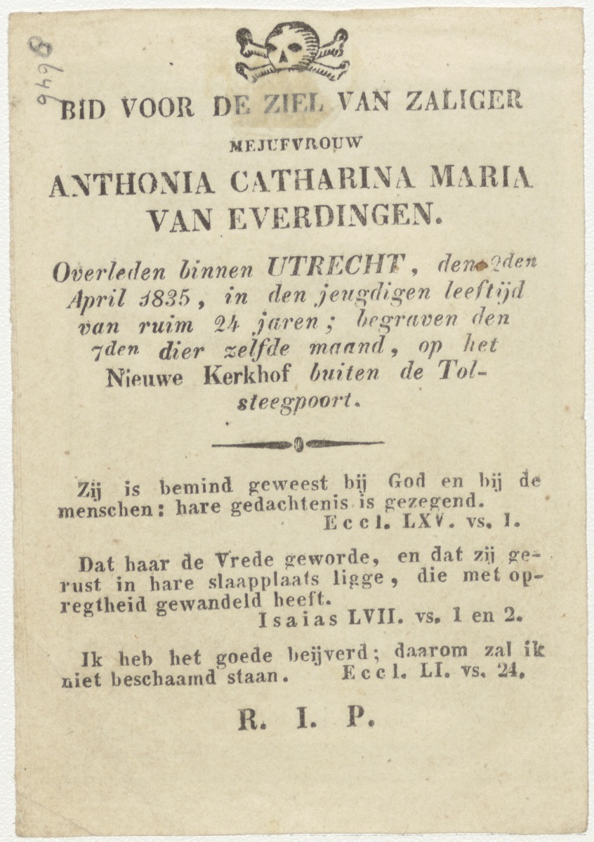 Maria boodschap, kz. Bid voor ziel Van Everdingen (+1835) Utrecht