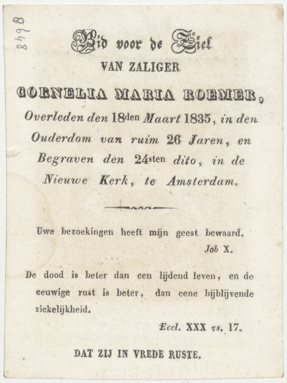 Communie van Maria Magdalena (Frans), kz. Bid voor ziel Roemer (+1835) Amsterdam