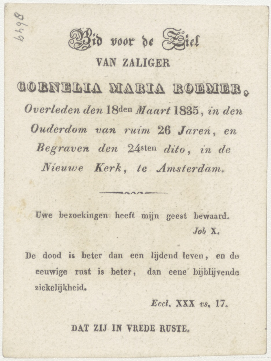 H. Maria Magdalena (Frans), kz. Bid voor ziel Roemer (+1835) Amsterdam