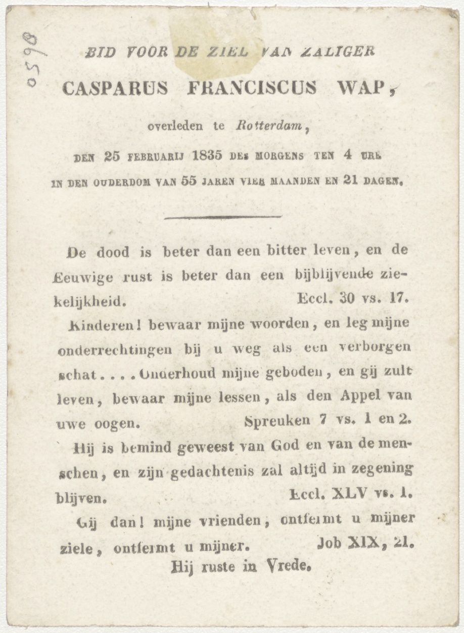 Brandend H. Hart (Frans), kz. Bid voor ziel Wap (+1835) Rotterdam