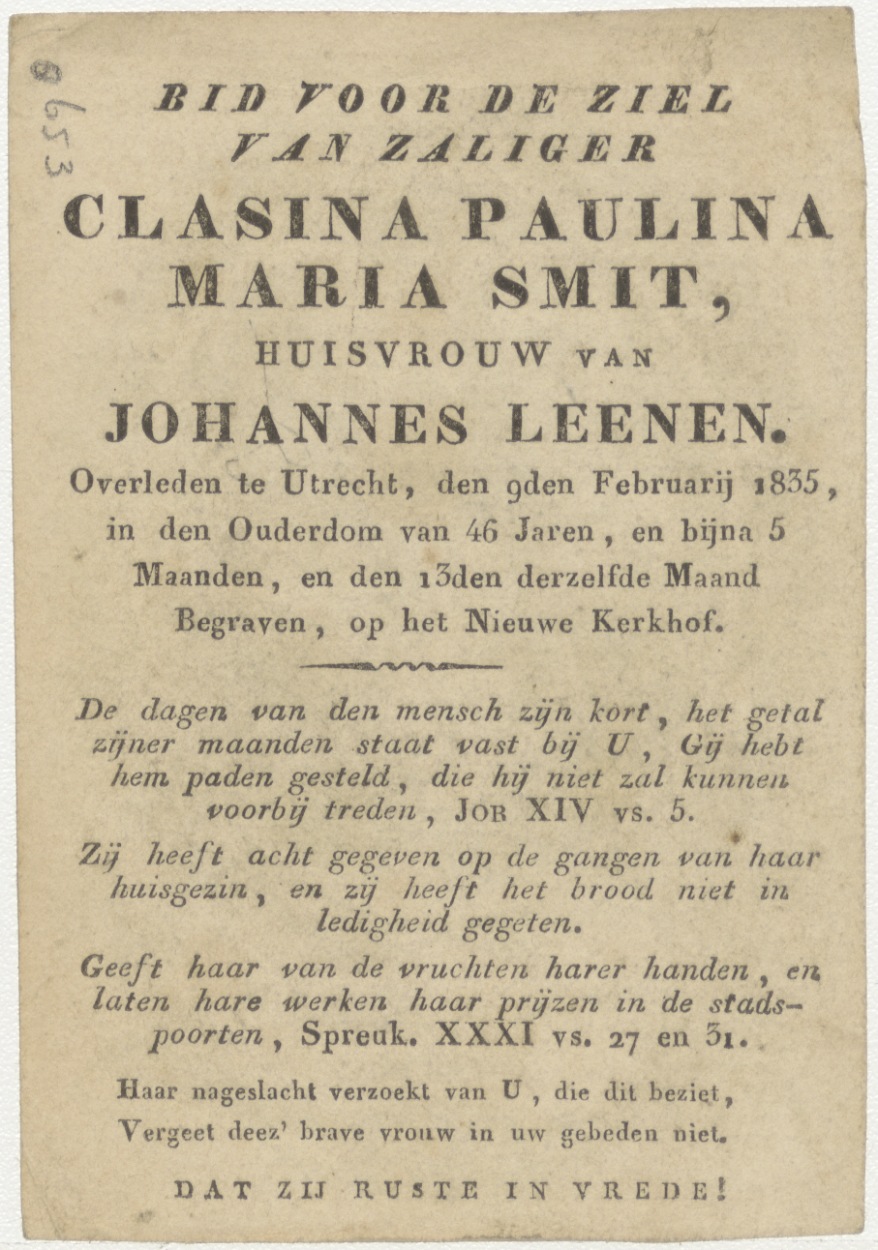 H. Joachim, Anna en Maria, kz. Bid voor ziel Smit-Leenen (+1835) Utrecht